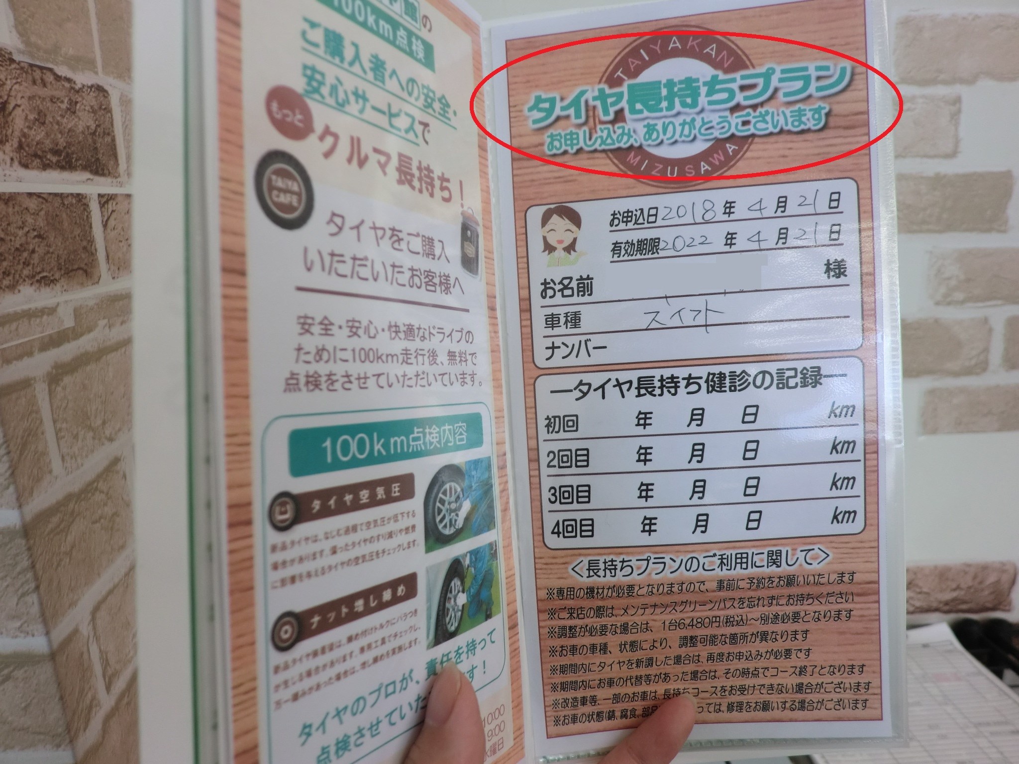 合わせて、アライメントの定期健診つきプラン「タイヤ長持ちプラン」