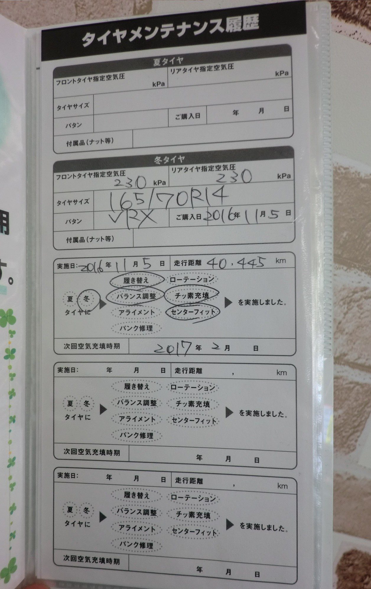 いつタイヤを新しく交換したのか、