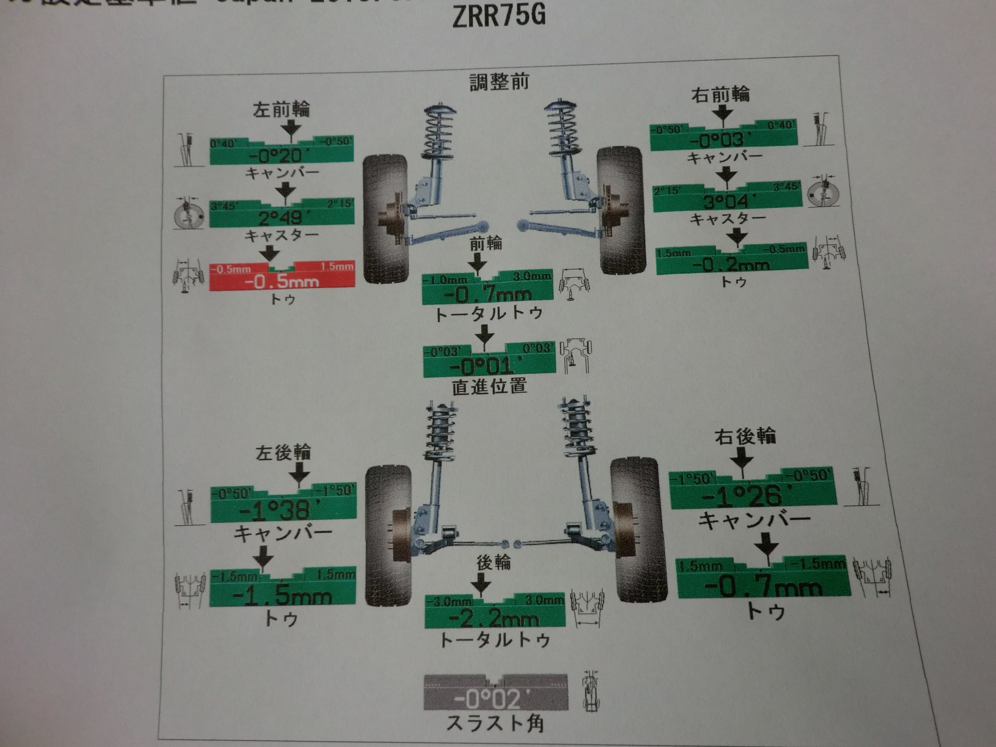 タイヤ新品交換と合わせて、アライメント作業がありました。