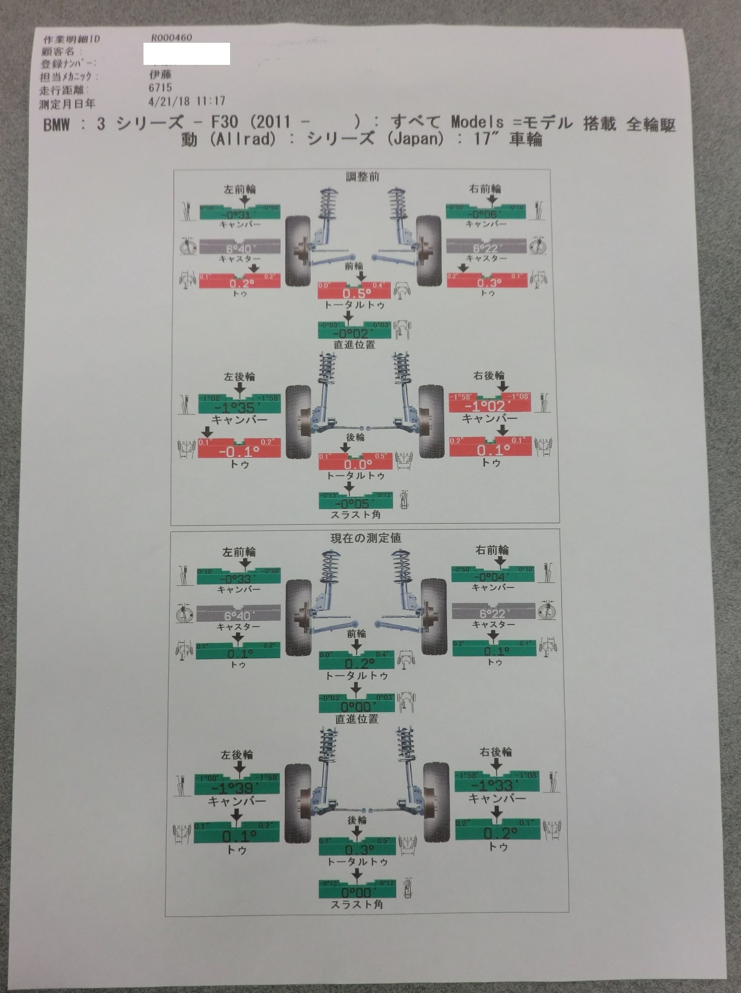 【BMW F30】アライメント調整&ドライブレコーダー取付!