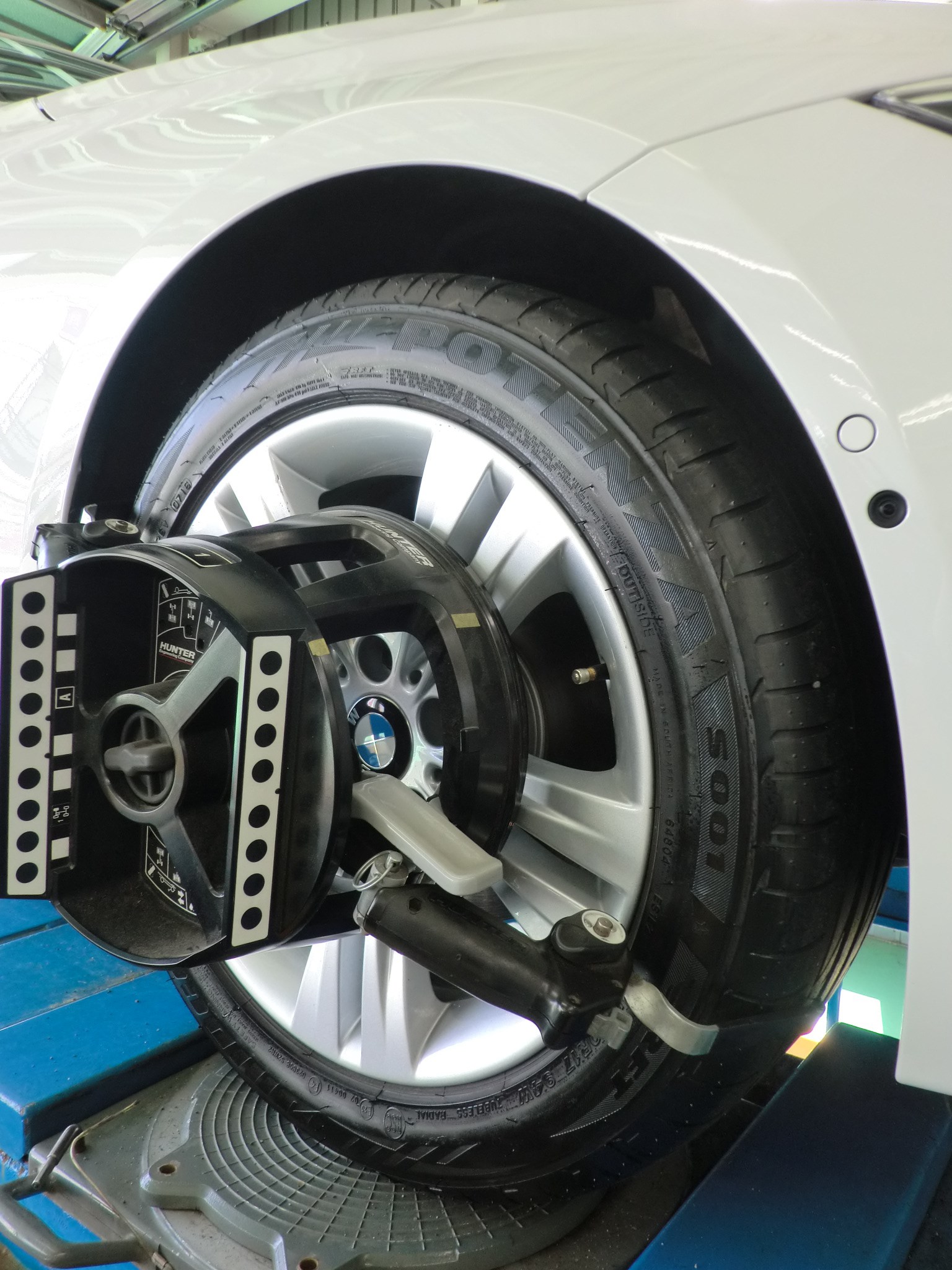 その後、タイヤの取付角度の歪みを矯正する「アライメント」へ。