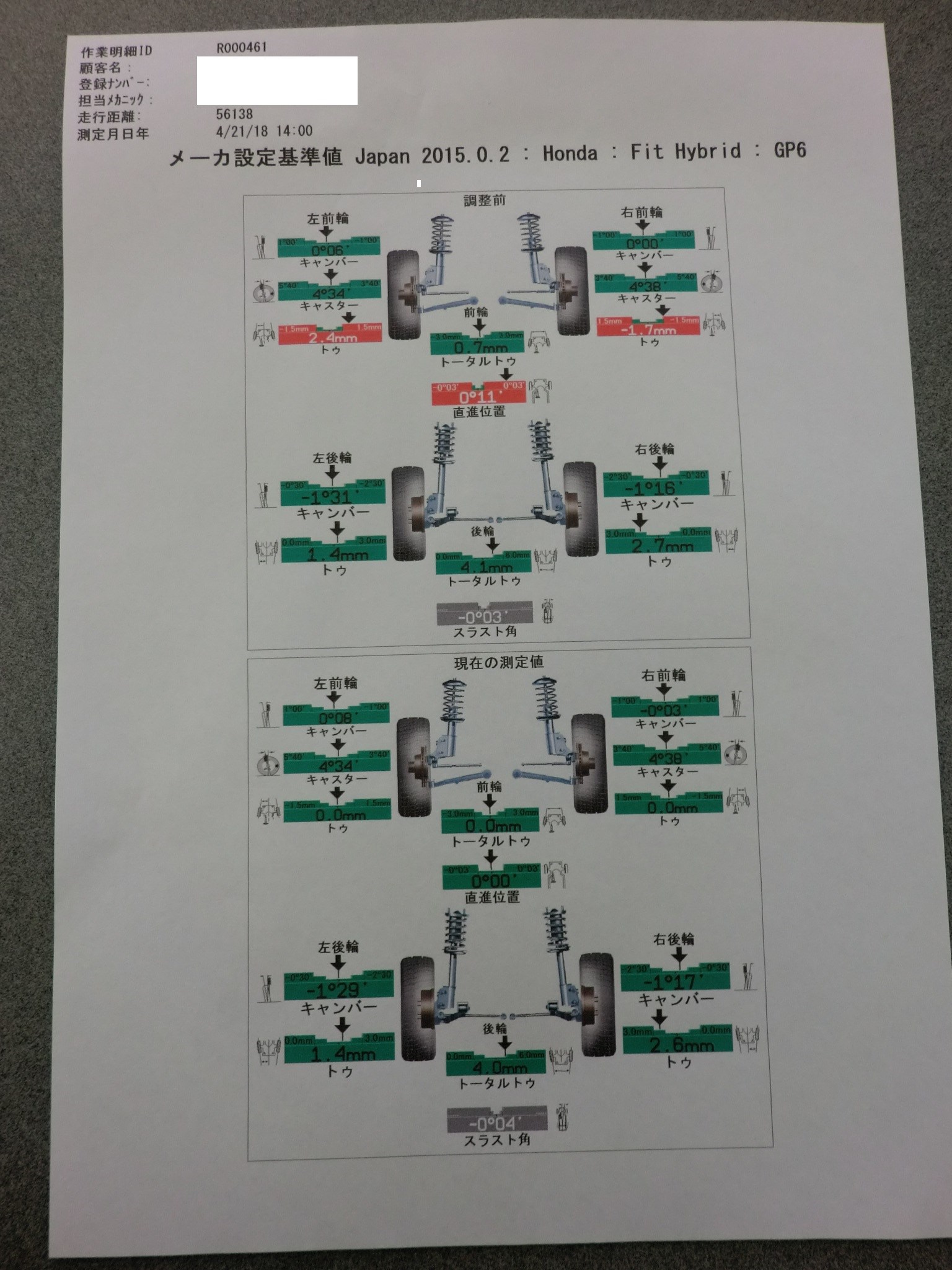 タイヤ新品交換と合わせて、アライメント作業がありました。