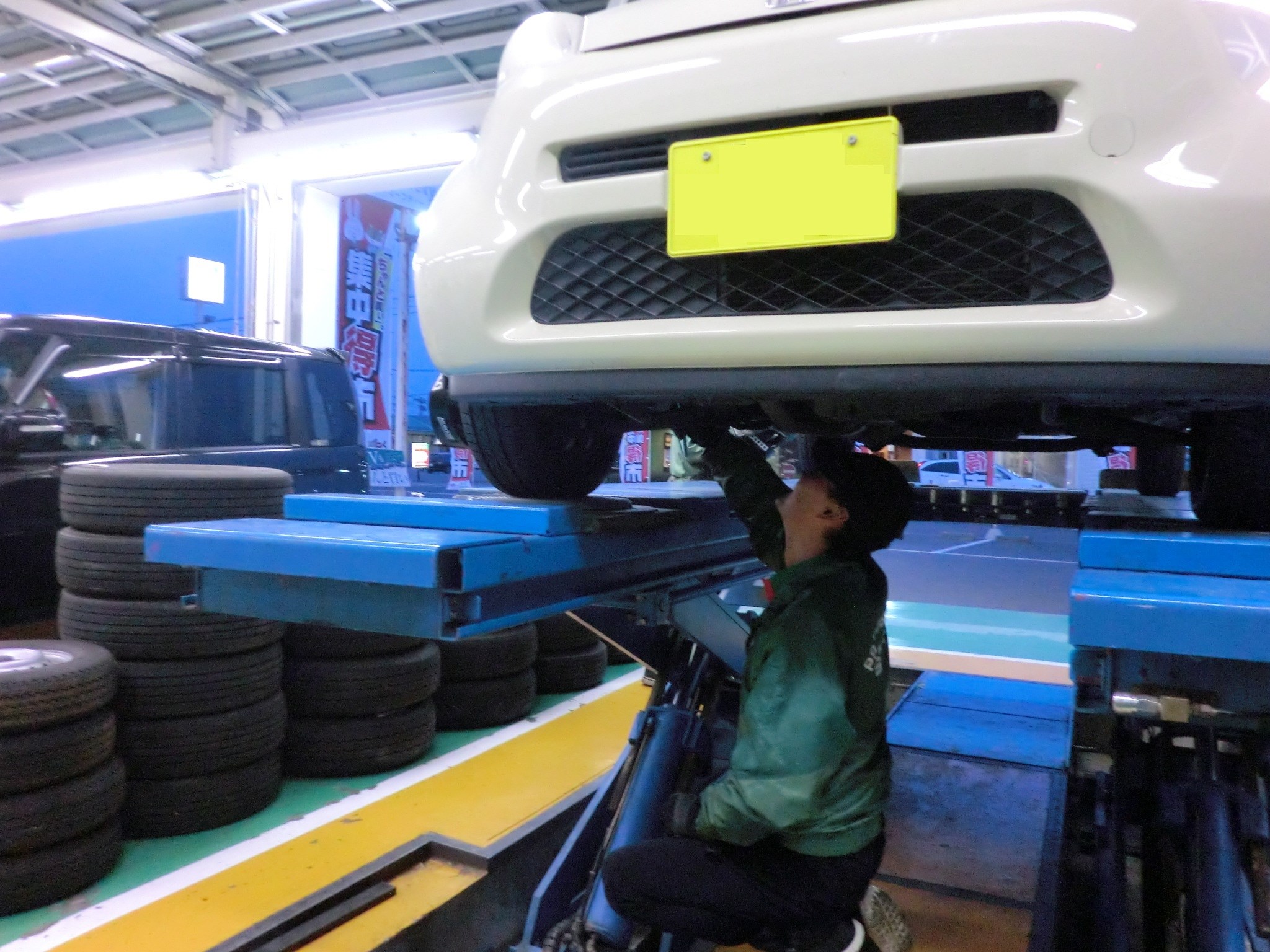 タイヤ新品交換と合わせて、アライメント作業がありました。