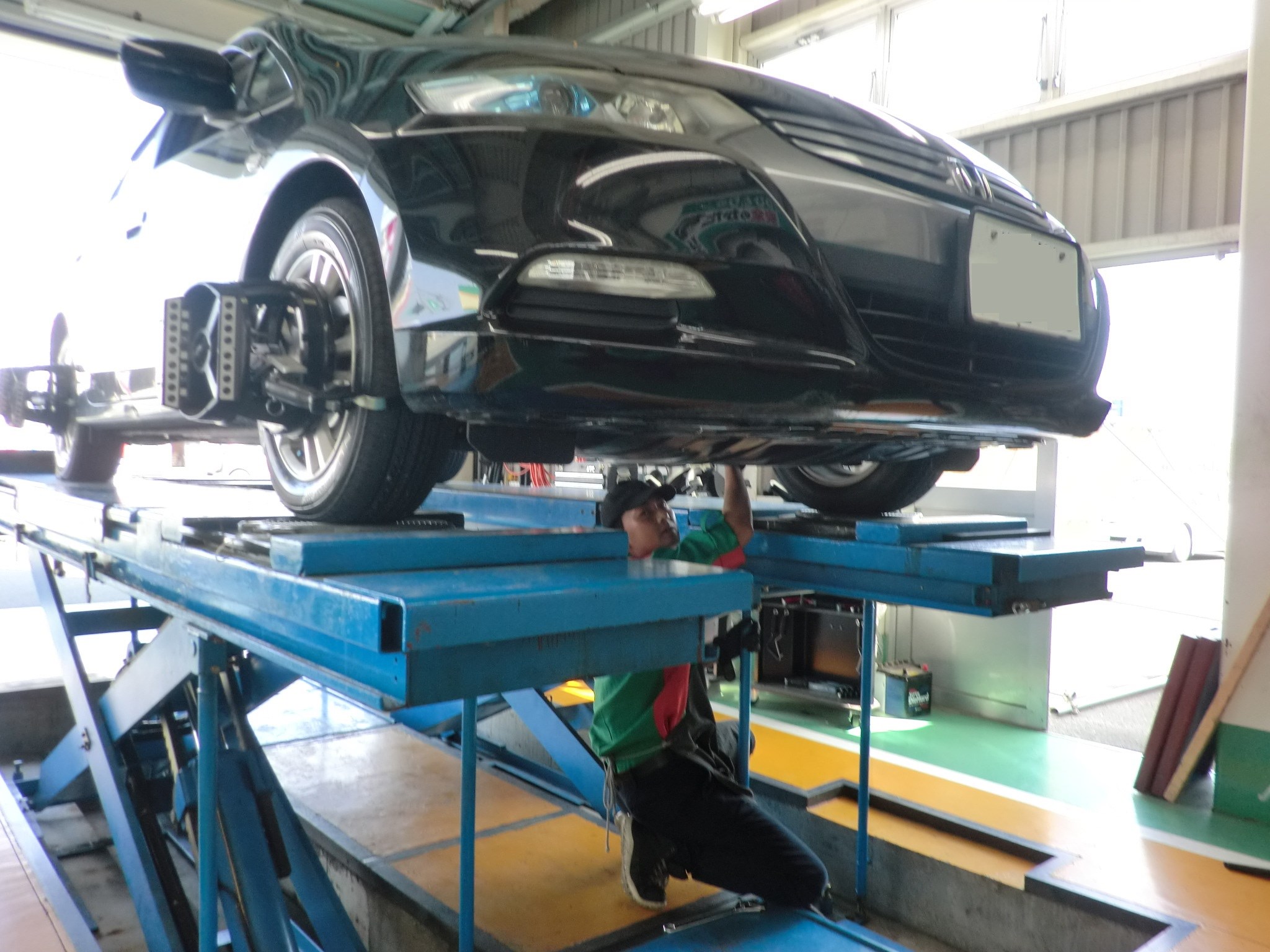 その後、タイヤの取付け角度の歪みを矯正する「アライメント」へ。