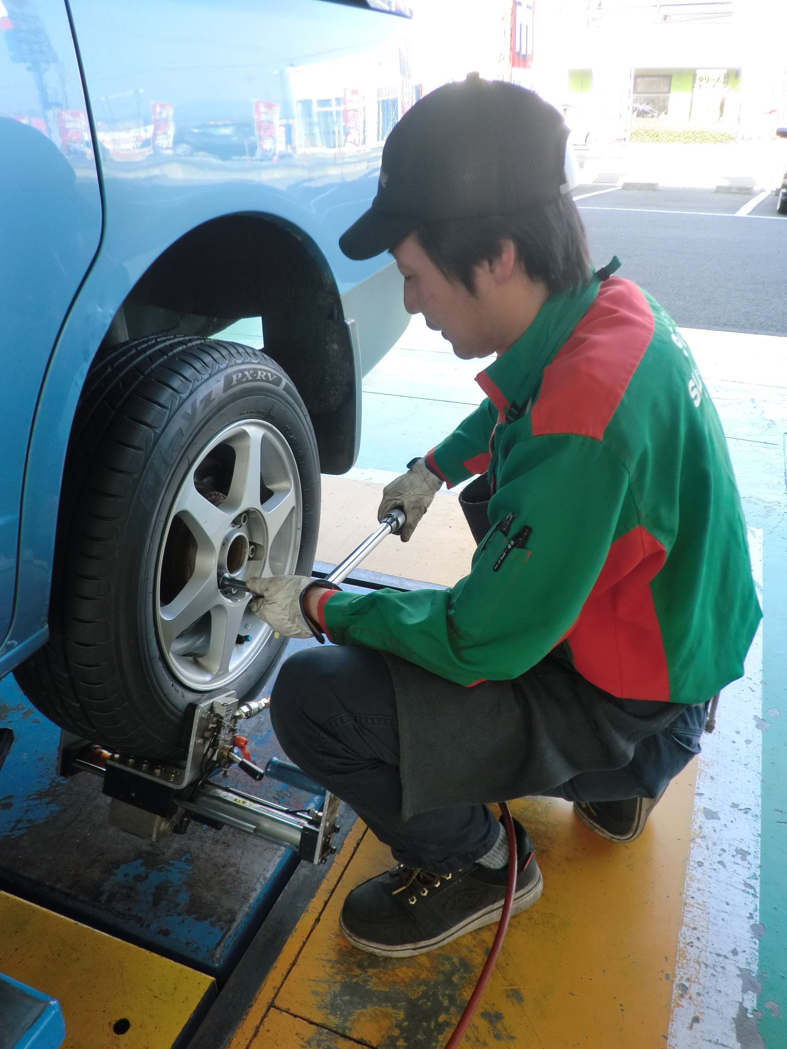 タイヤ新品交換と合わせて、アライメント作業がありました。