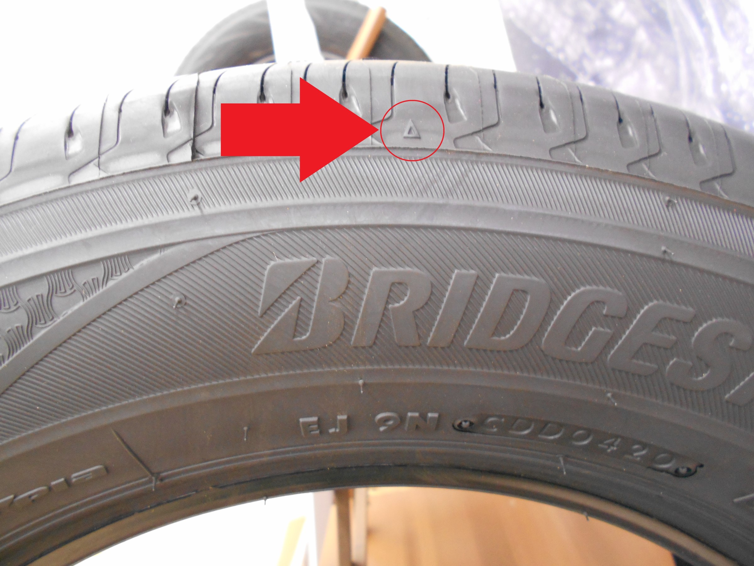 タイヤのサイドに三角マークが
