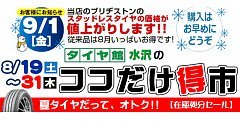 WEBでもご案内しておりました、 9月1日(金)の冬タイヤの値上げ が、目前に迫ってまいりました! そこで、 お盆明けの週末8/19(土)から、 タイヤ館水沢オリジナルイベント【ココだけ得市!!】 を開催いたします!!! スタッドレスタイヤのご購入は、どうぞお早めに! 9月発売の新商品『ブリザッ...