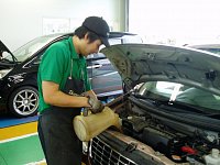 いつも当店をご利用いただいているお客様のアルテッツァへ、 ヘッドレンズクリーニング、HID取付、アライメント作業がありました! ヘッドレンズクリーニングのビフォーアフターがこちら ↓ 黄ばみがなくなり、クリアな仕上がりになりましたね♪ ↓ 作業中のスタッフ岩渕! しっかり養生し、 エンジン...