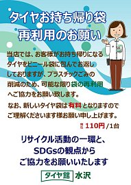 タイヤ持帰り袋の再利用にご協力をお願いします★
