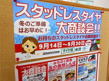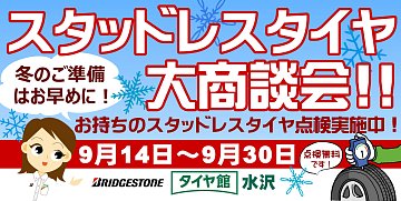 こんにちは(^^)/ タイヤ館水沢の WEBをご覧いただき ありがとうございます! 今日は、 オトクなセール速報を いちはやく WEBをご覧の皆さまへ お知らせします♪ 9月といえば・・・ そうですっ! いつも当店を ご利用いただいている 皆さまには、 予想通り(!?) スタッドレスタイヤ 大商談会です☆...