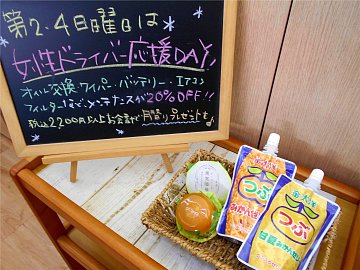 こんにちは(^^)/ 明日、 第4日曜日の 8月25日(日)は タイヤ館水沢店 女性の感謝DAY 女性ドライバー応援DAY 開催日です!!! ご来店の 女性のお客様には、 おクルマのメンテナンス 商品がオトク になりますよ~☆彡 ★エンジンオイル ★ワイパー ★バッテリー ★エアコンフィルター さらに、 上記メ...