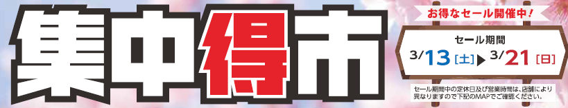 集中得市 4日目!! ポスト 2021年3月17日 こんにちは!大牧です。 本日は集中得市4日目になります! キャンペーン期間も残り半分となりました。 季節が変わり始めたということで、タイヤも交換してみてはいかがでしょうか? ご来店お待ちしております^^ 担当:大牧