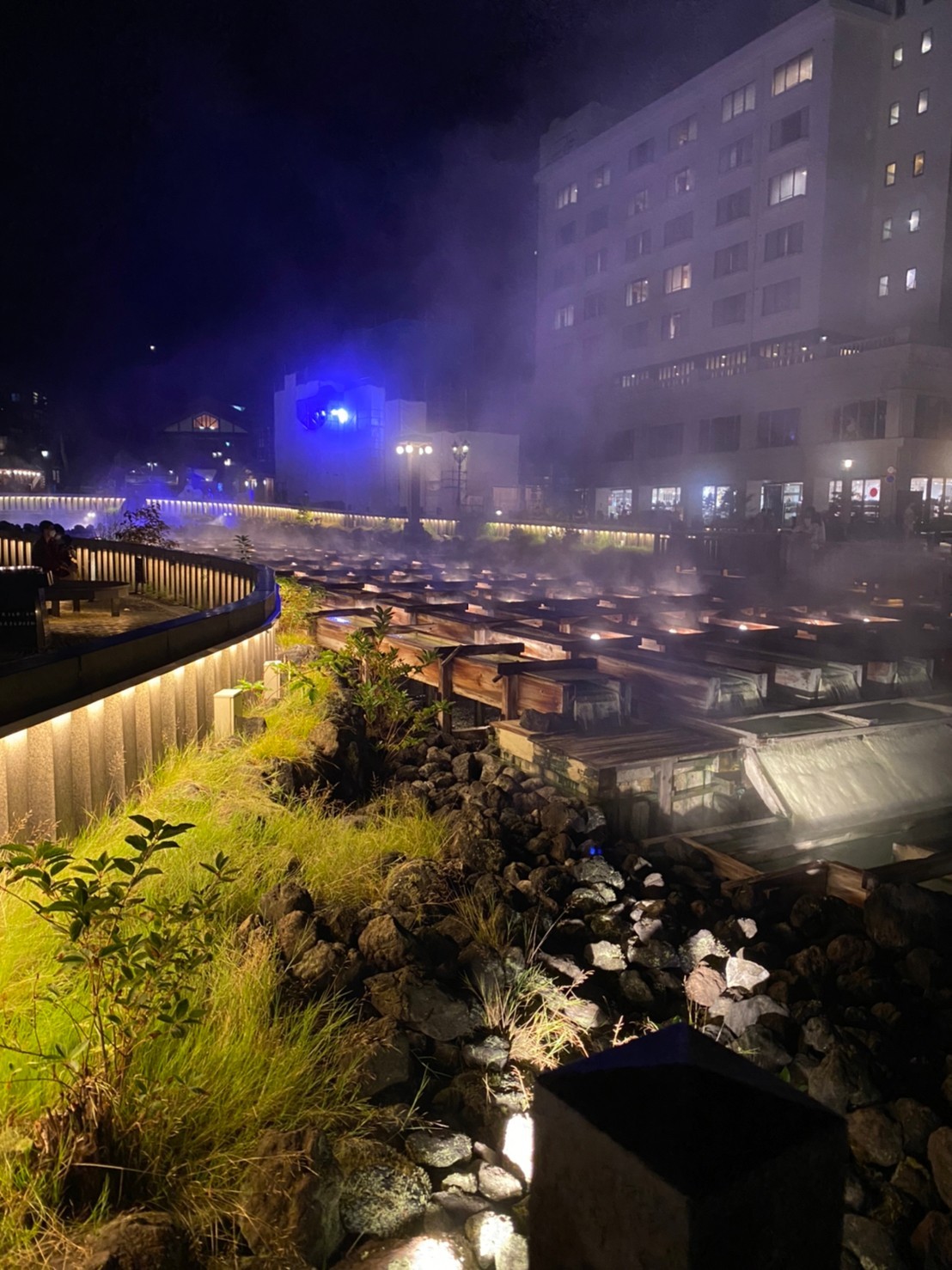 湯畑の近くの旅館だったので浴衣で湯畑の周りを