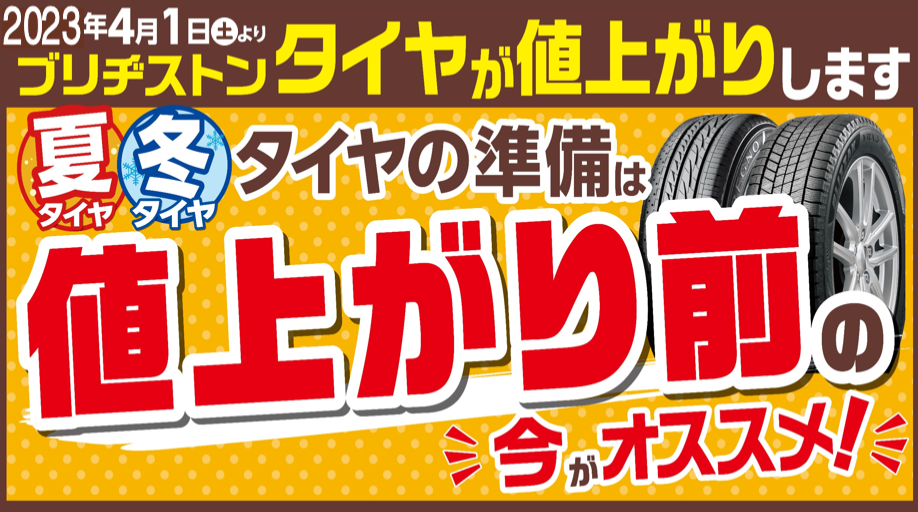 夏タイヤ・冬タイヤともに値上げ前のご予約・装着がオススメです。