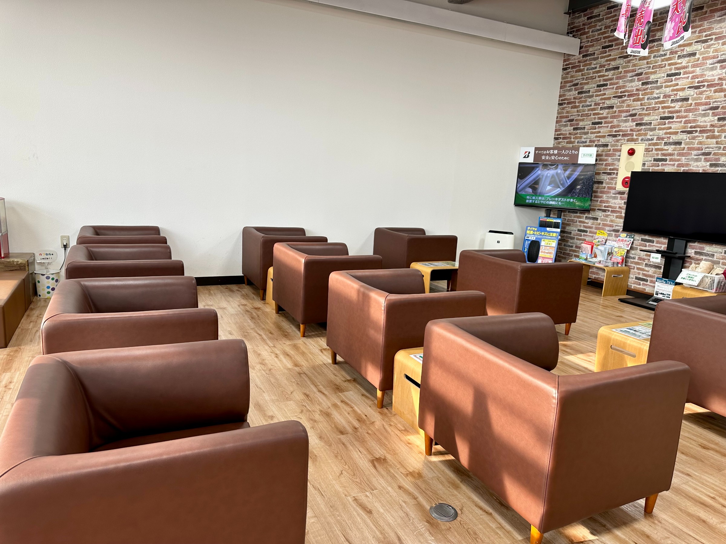 タイヤ交換やエンジンオイルの作業のお待ち時間は約1時間くらいになります。