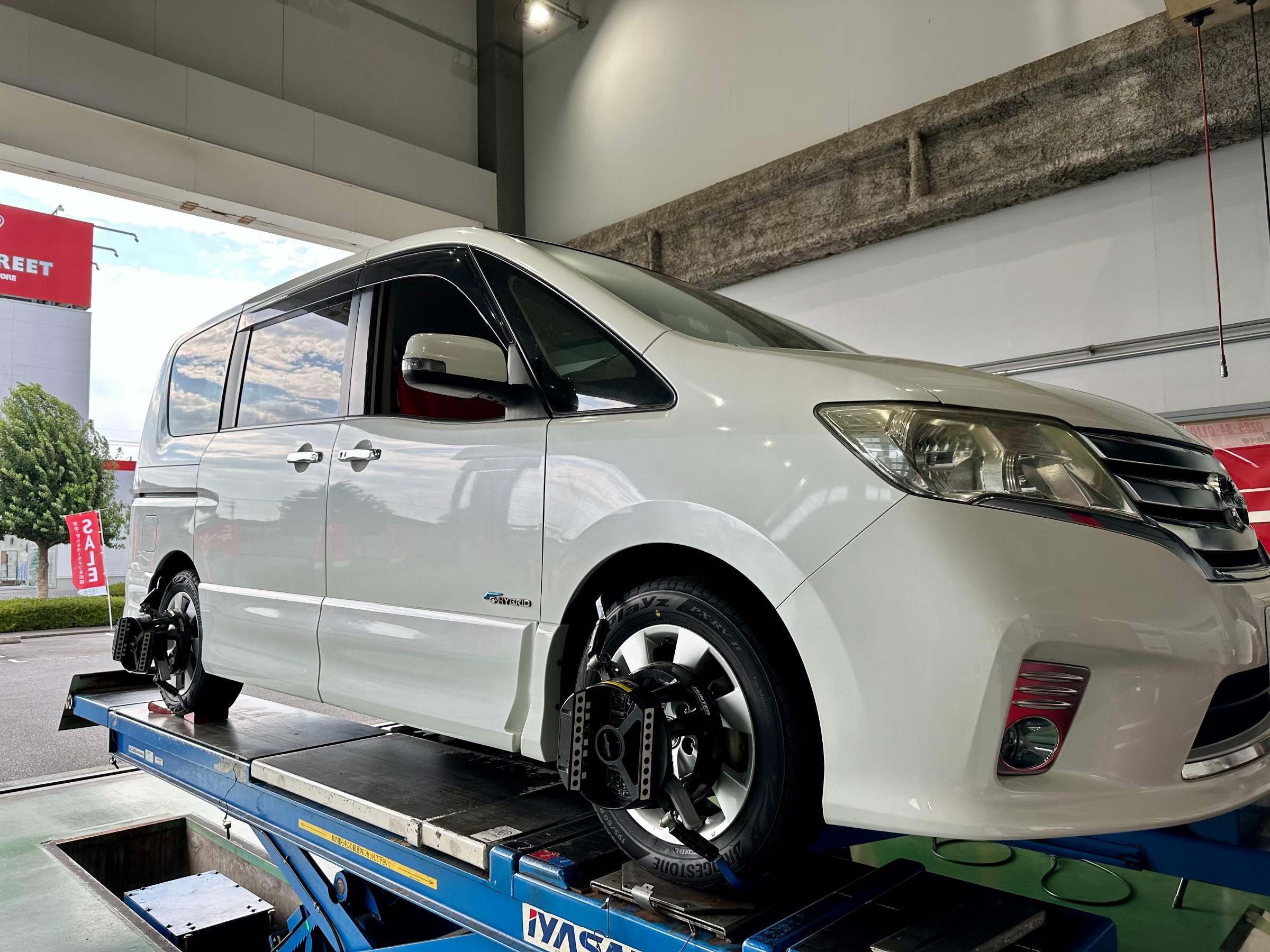 次に、タイヤを取り付け後アライメント作業です