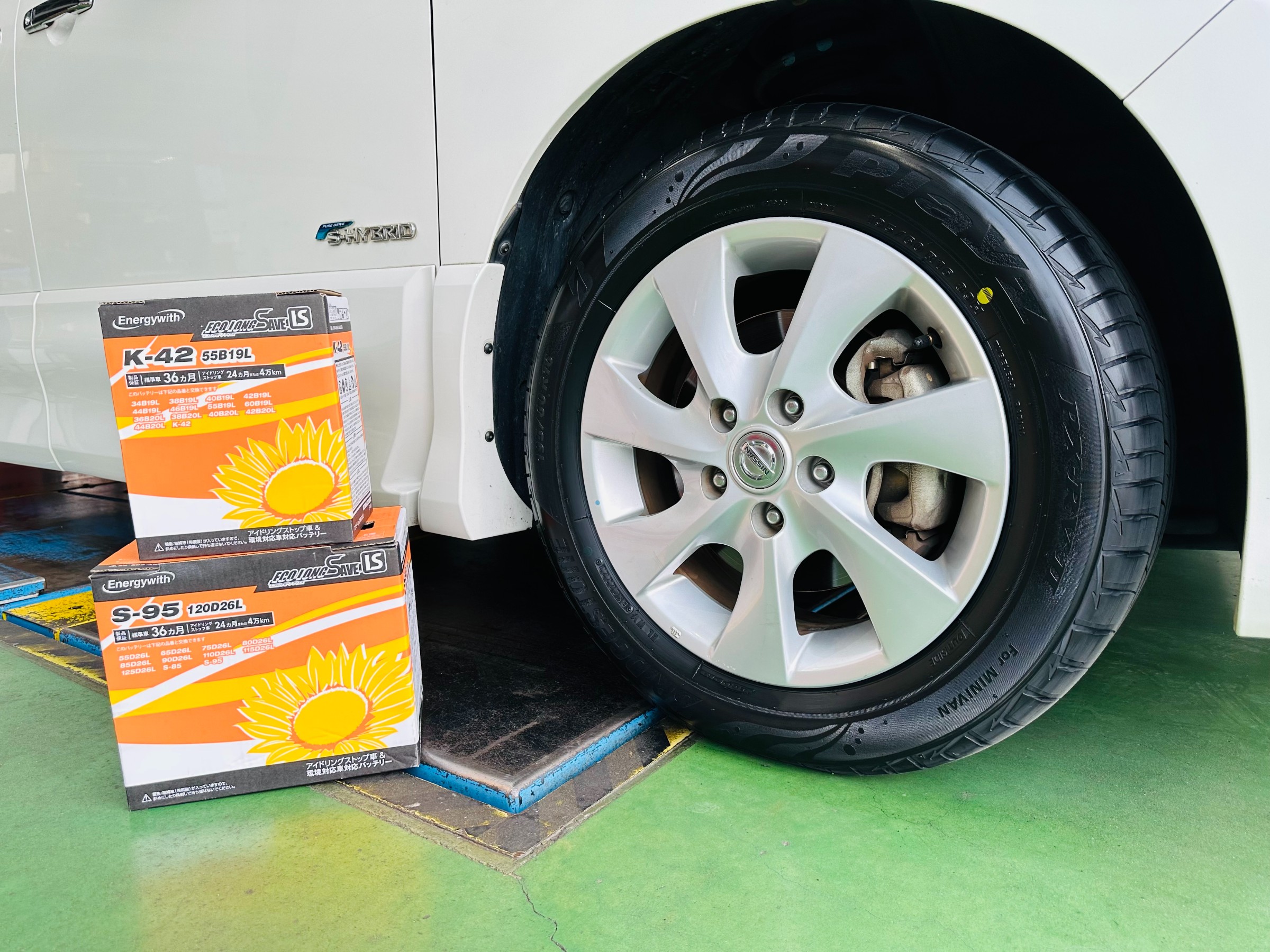 作業内容は、タイヤ交換、アライメント、バッテリー交換です!