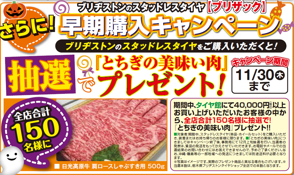 ブリヂストンタイヤ4本セットご成約のお客様、
