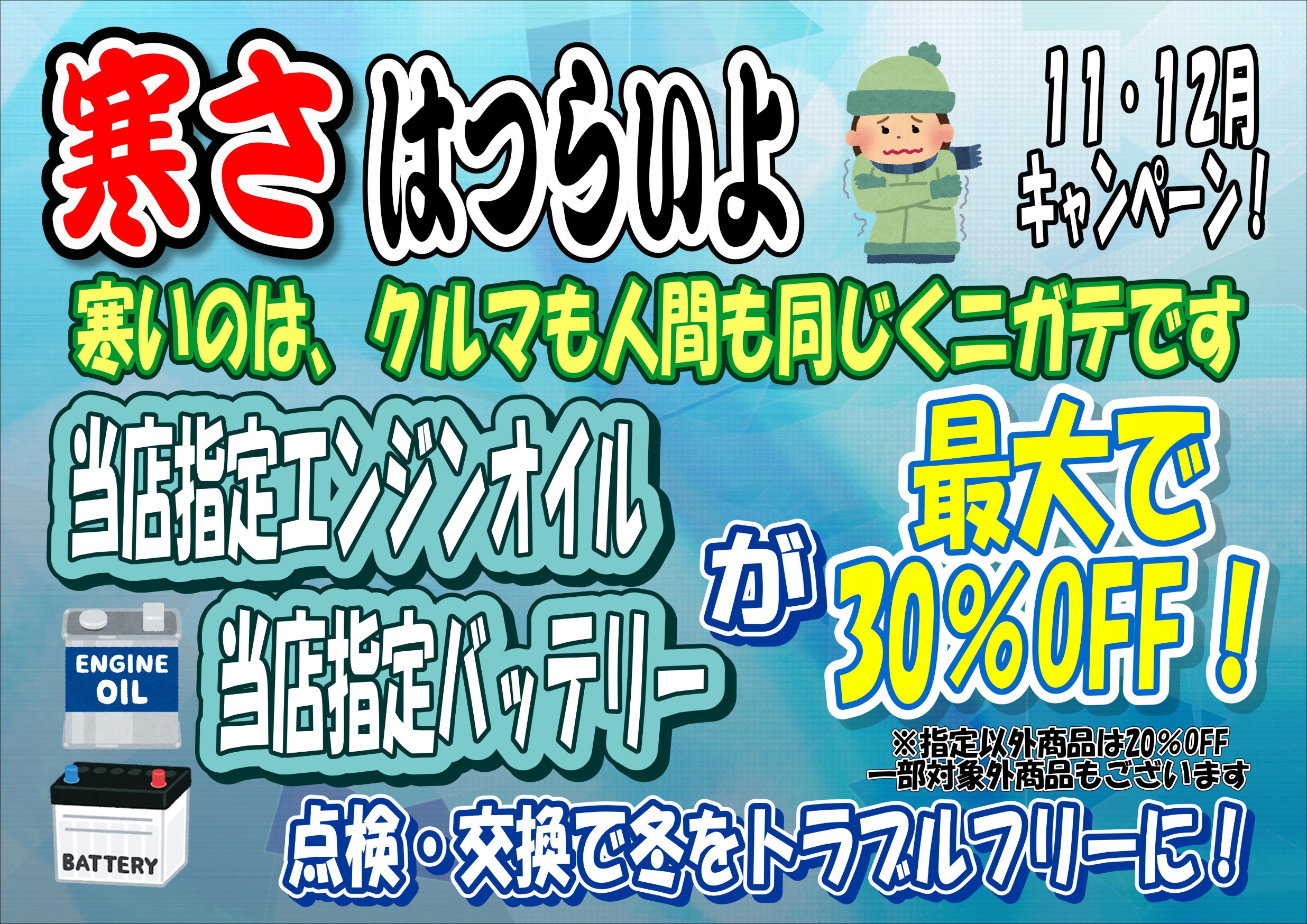 バッテリーやエンジンオイルの