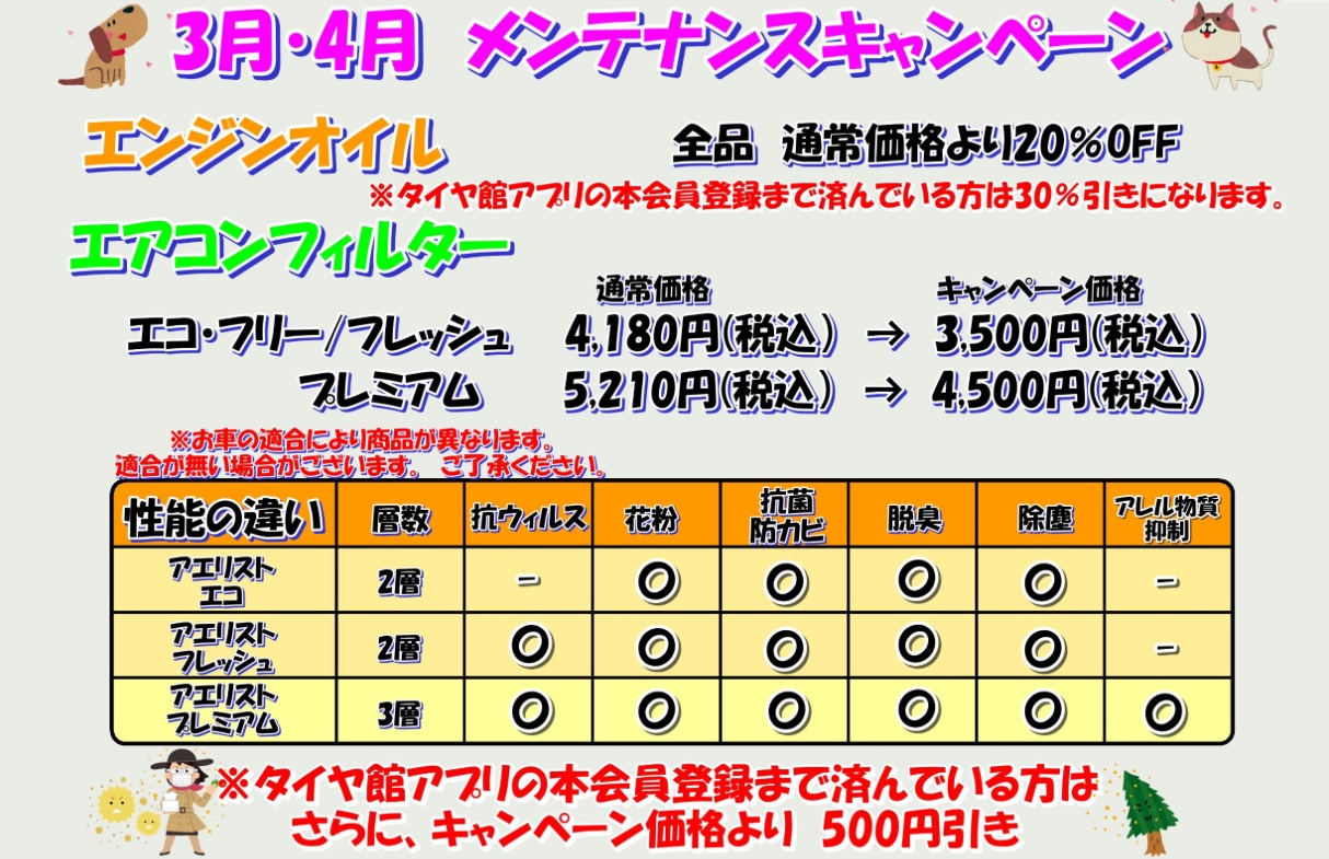 エンジンオイル・エアコンフィルターキャンペーンを行っております!!
