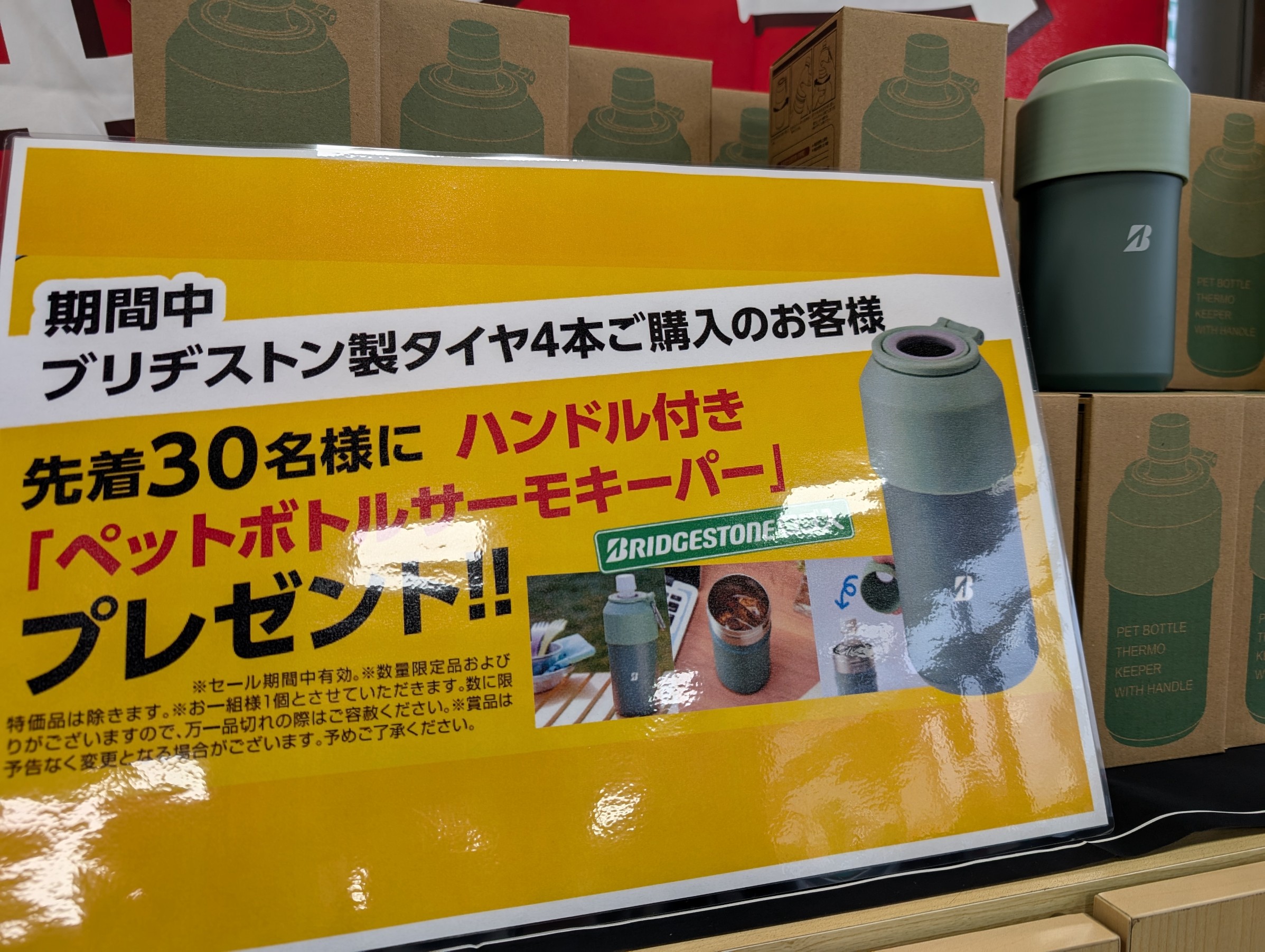 本日は集中得市期間限定!ブリヂストン製タイヤ4本ご購入のお客様へ
