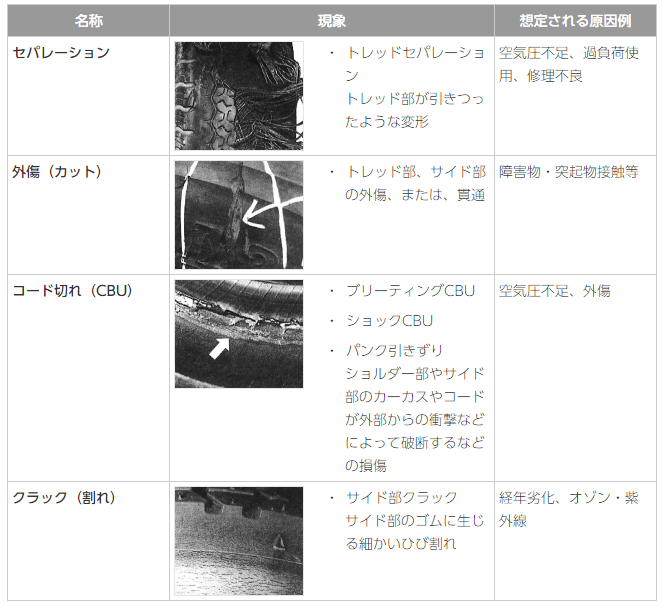 ヒビ・キズがあるとタイヤの故障に繋がる恐れがあります!