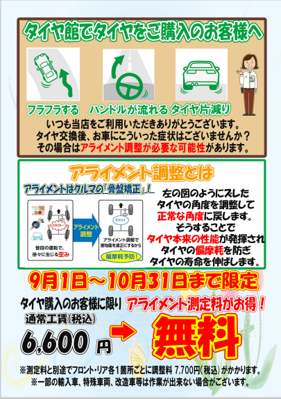9・10月はアライメントキャンペーンを開催しております!