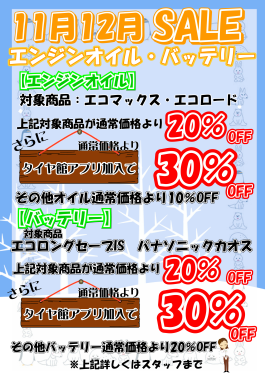 【アプリ登録で最大30%オフ】冬のエンジンオイル・バッテリーキャンペーン