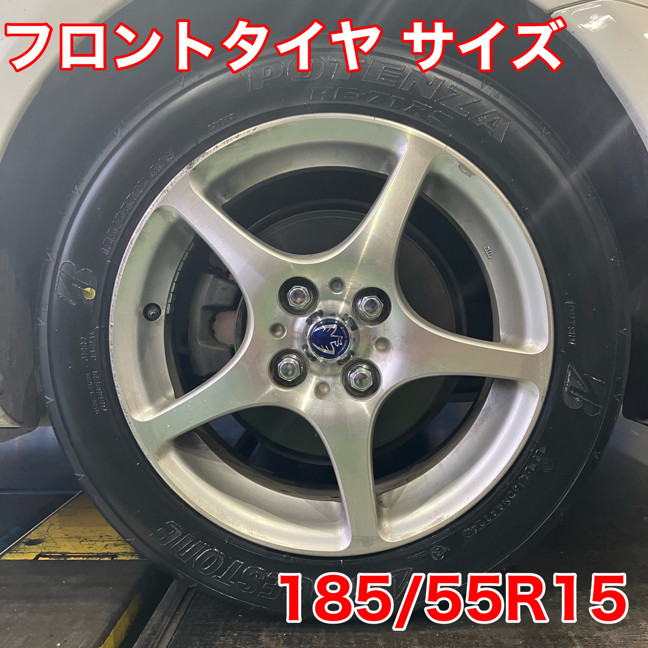 こちらのMR-Sは前後でタイヤサイズが違う設定になっておりますのでのその点を注意しながらタイヤの用意、作業を進めます!