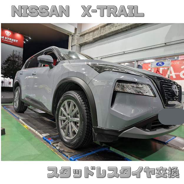 本日はNISSAN X-TRAILにスタッドレスタイヤ+アルミホイールを装着したので