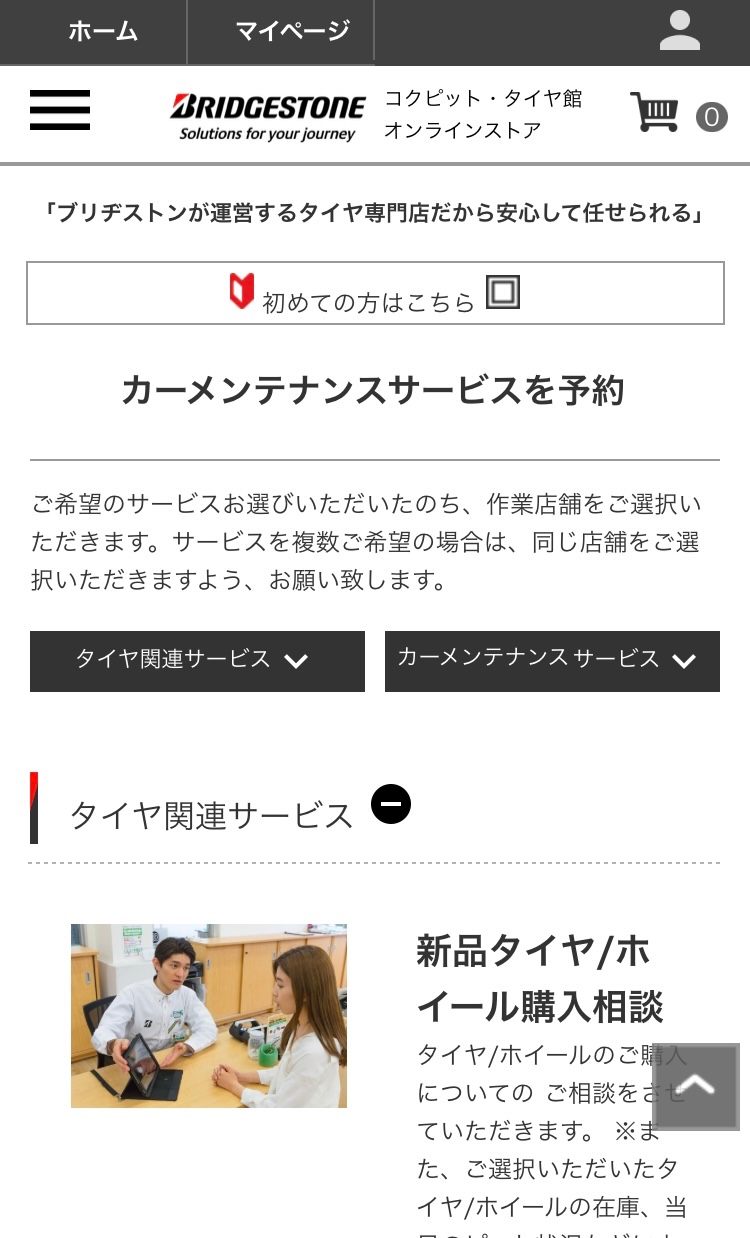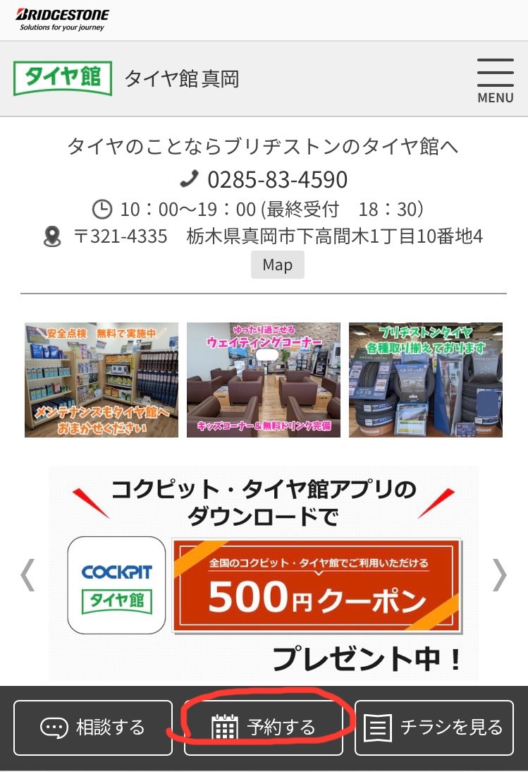 当タイヤ館真岡のWEBよりコチラのメニューをタップし、必要なサービスを選択してご予約を取ることが可能です。