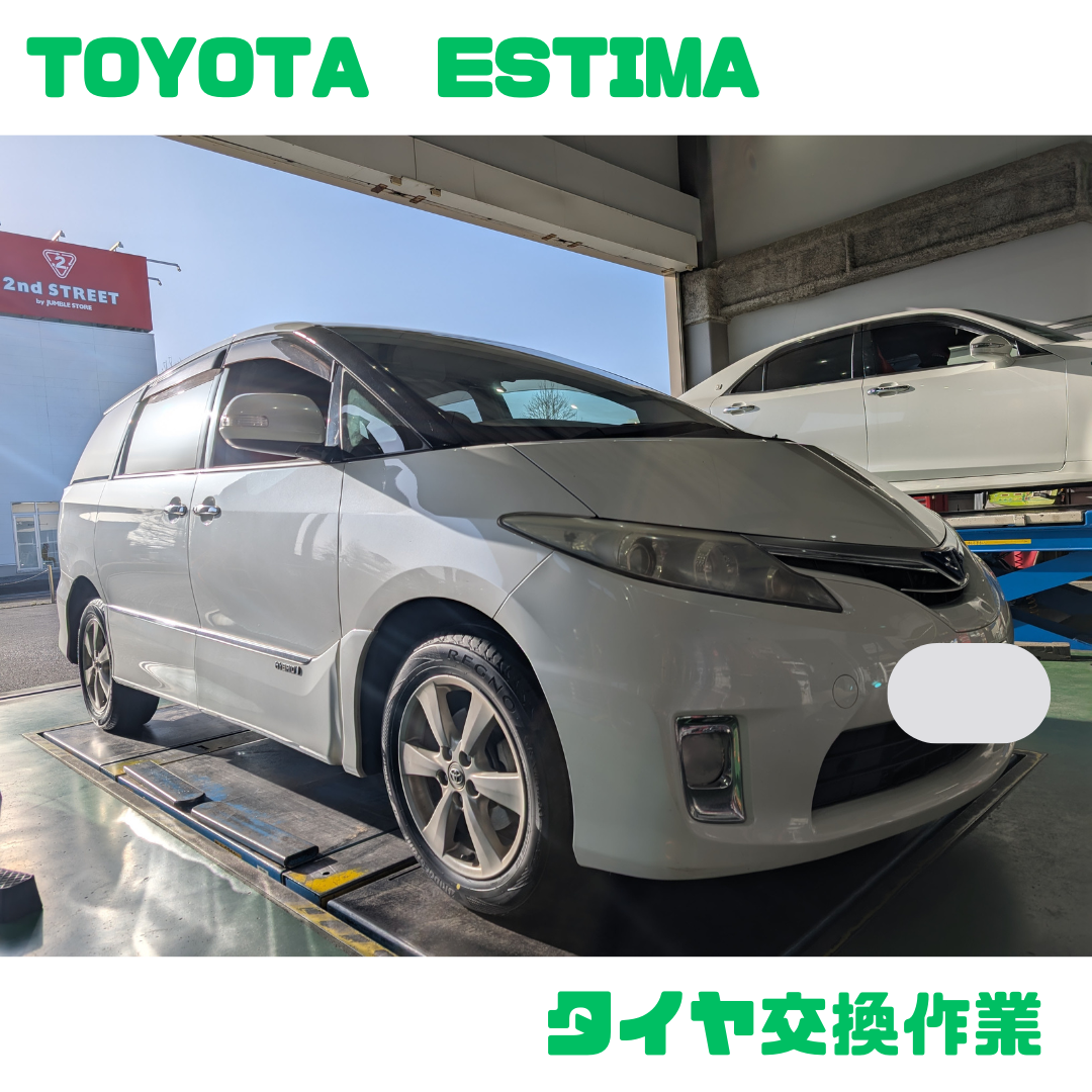 本日はトヨタ エスティマ タイヤ交換作業をご紹介いたします。