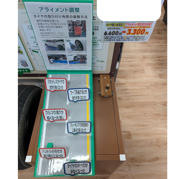 2025年6月30日まで新品タイヤ交換とセットでアライメント測定がお得になります。