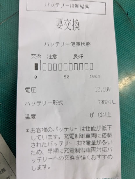 いままでご使用のバッテリーは要交換の判定が出てしまいました。