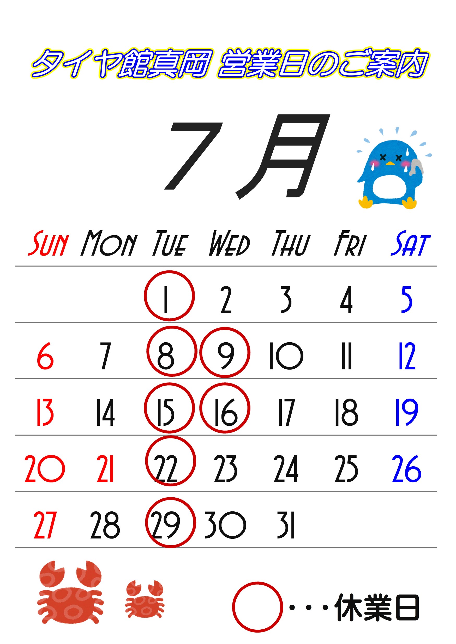 7月 営業日のお知らせ