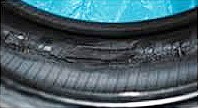 タイヤ内面の状況は確認できない。その為コードに損傷を受けている場合は早期に故障する危険有。