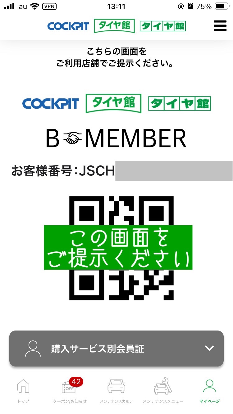 「タイヤ館アプリ」ご提示について