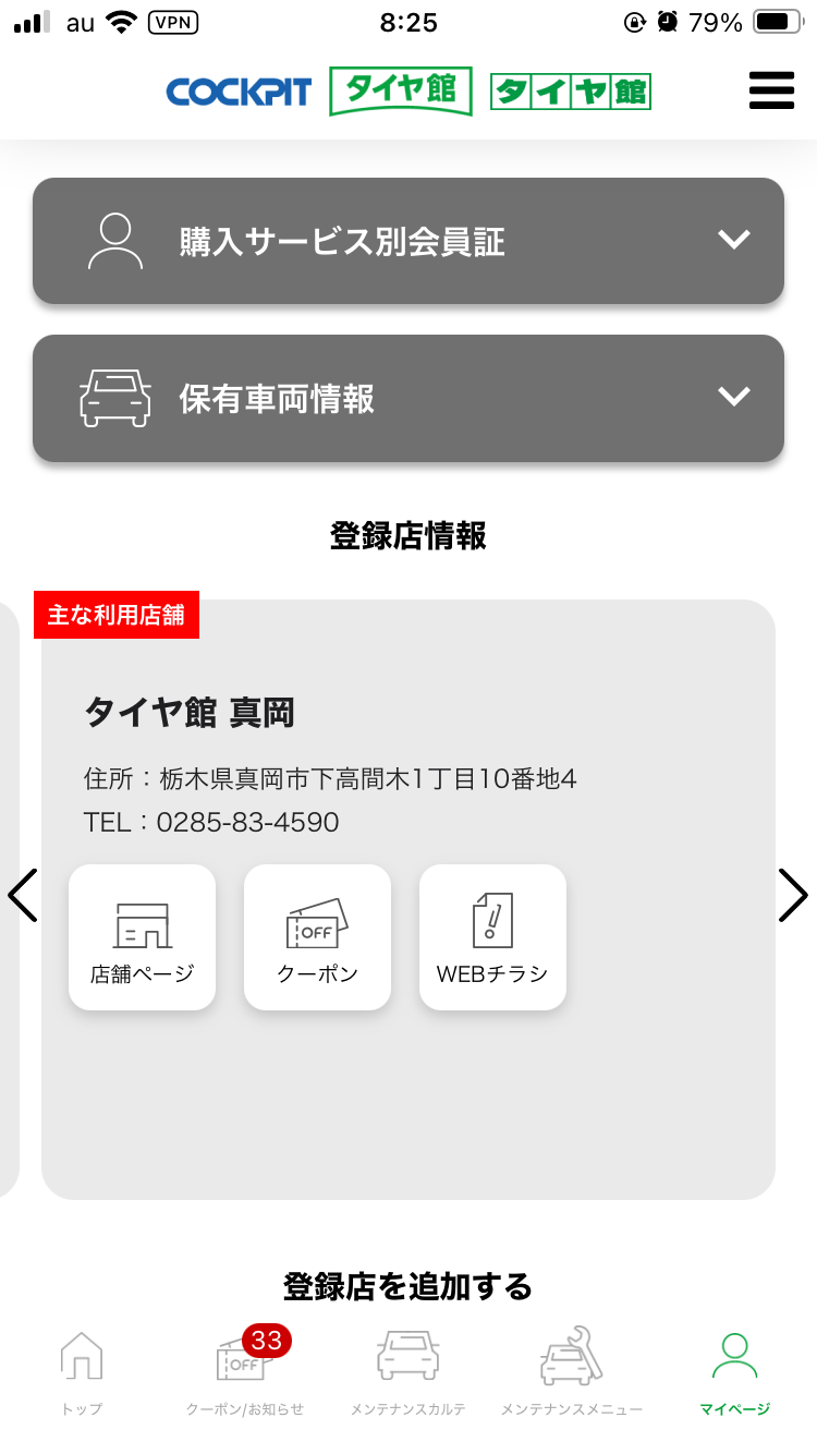 利用登録店舗に「タイヤ館真岡」と表示されていましたらOKです!