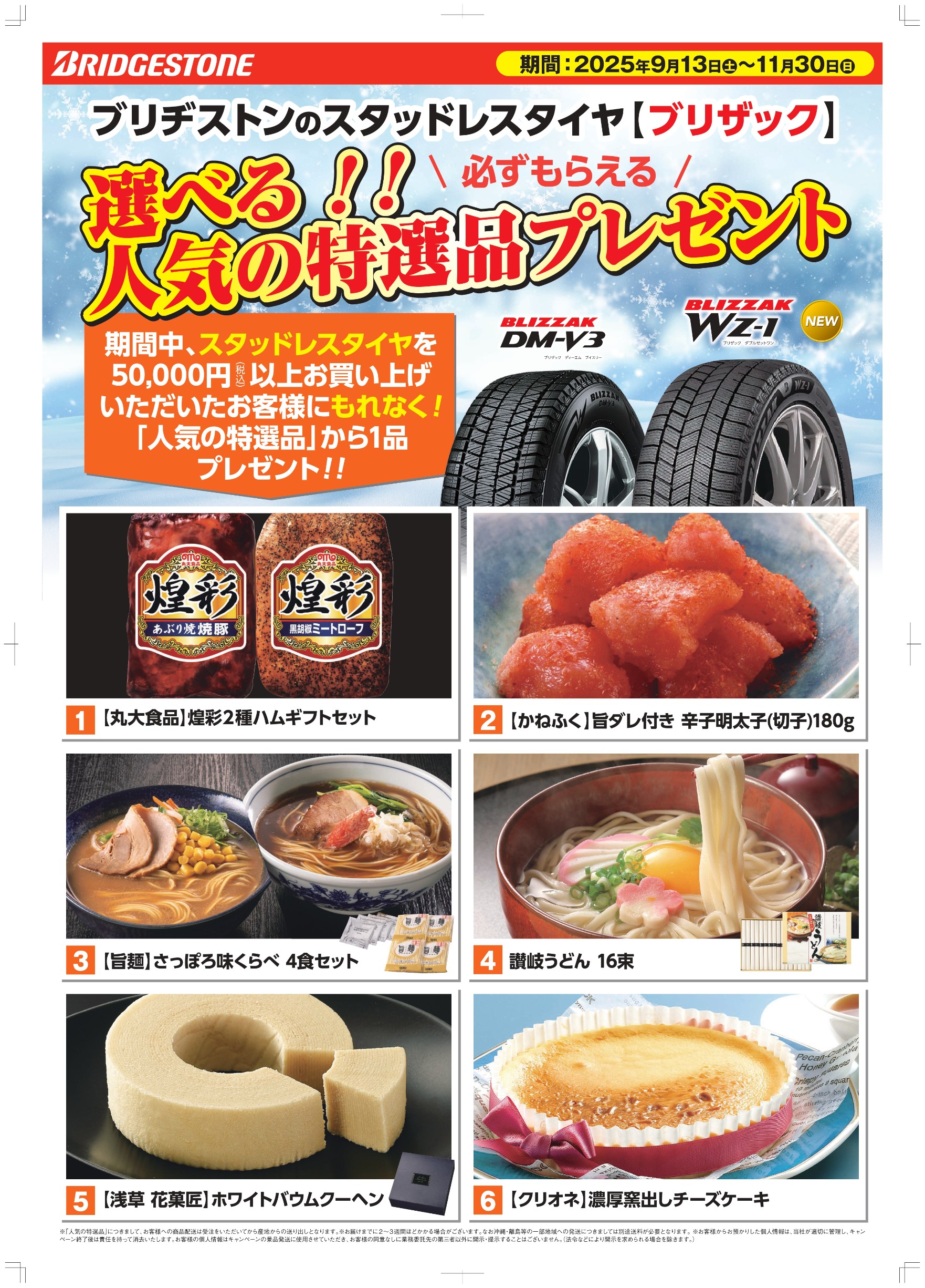 期間中にスタッドレスタイヤを50,000円(税込)以上お買い上げいただいた