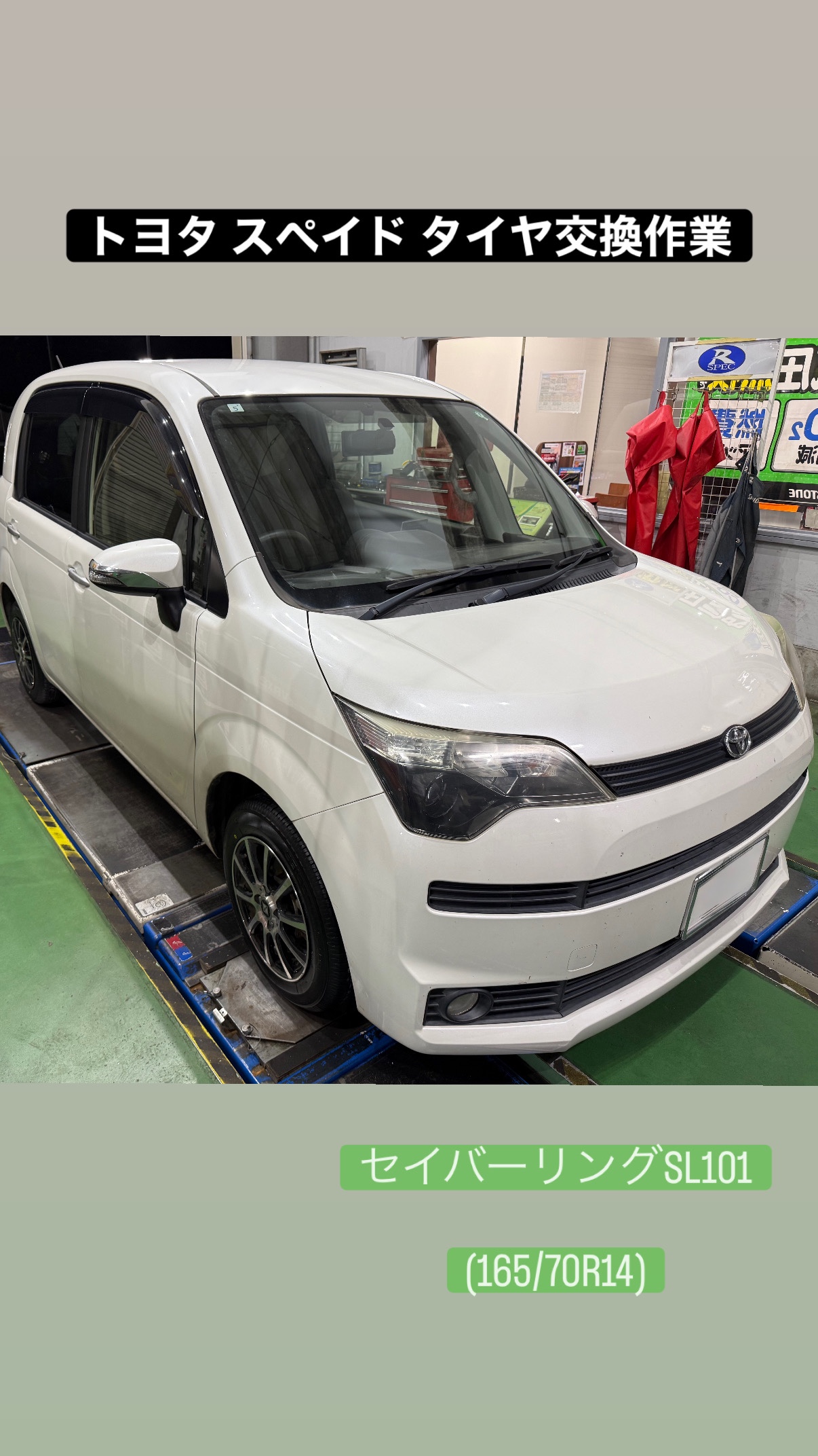 本日はトヨタ スペイドのタイヤ交換を行いました。
