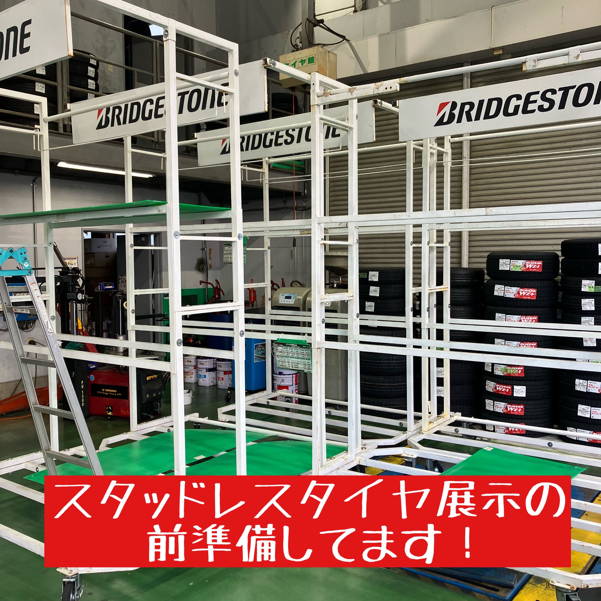 スタッドレスタイヤ搬入準備だよ、全員集合!