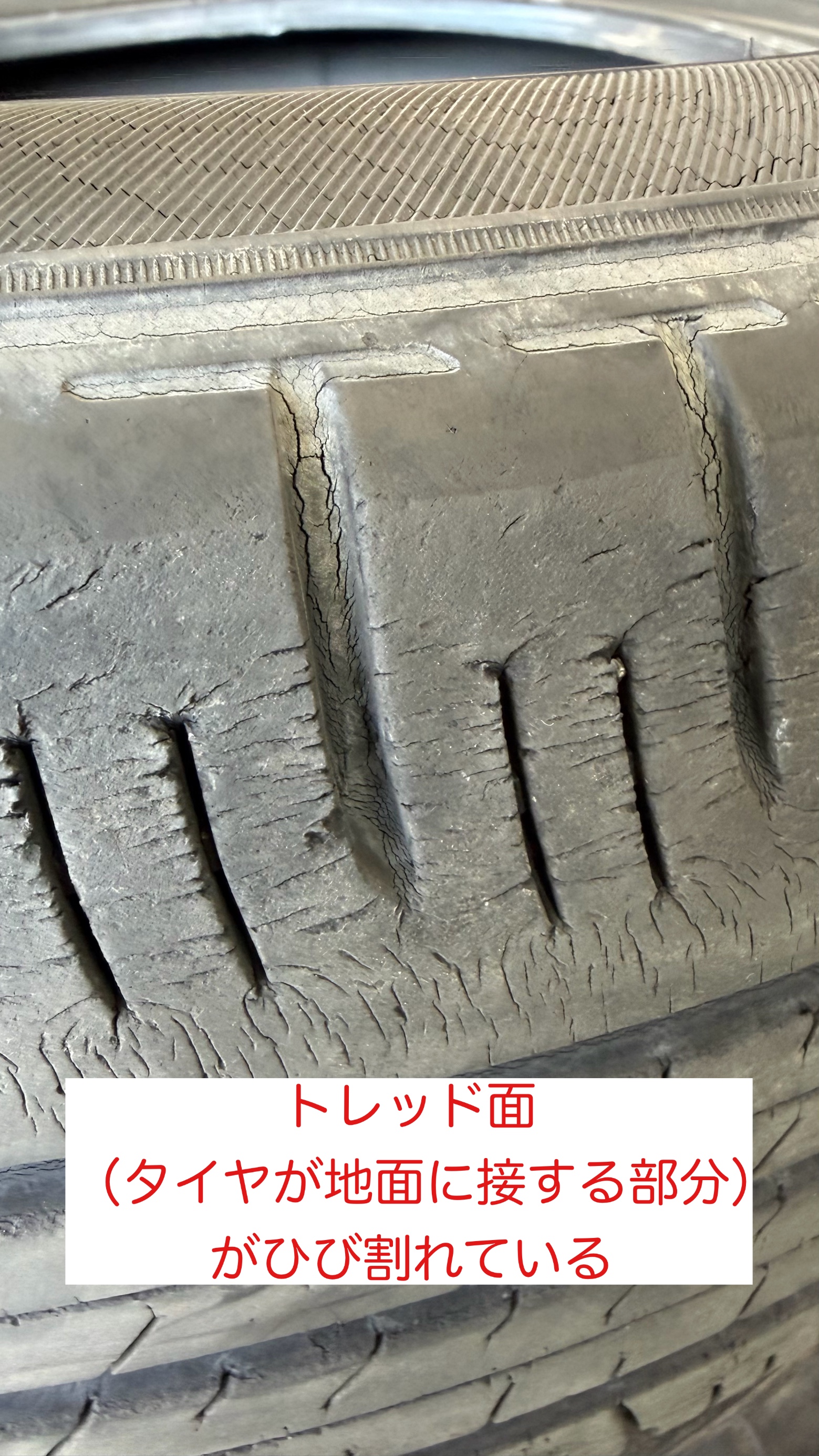 トレッド面(タイヤが地面に接する部分)のひび割れや、