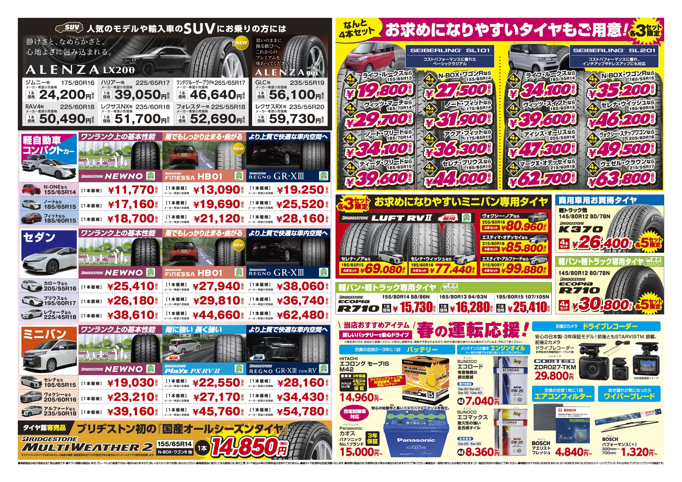 ブリヂストン タイヤフェアも同時開催で上記期間中、ブリヂストン製タイヤを