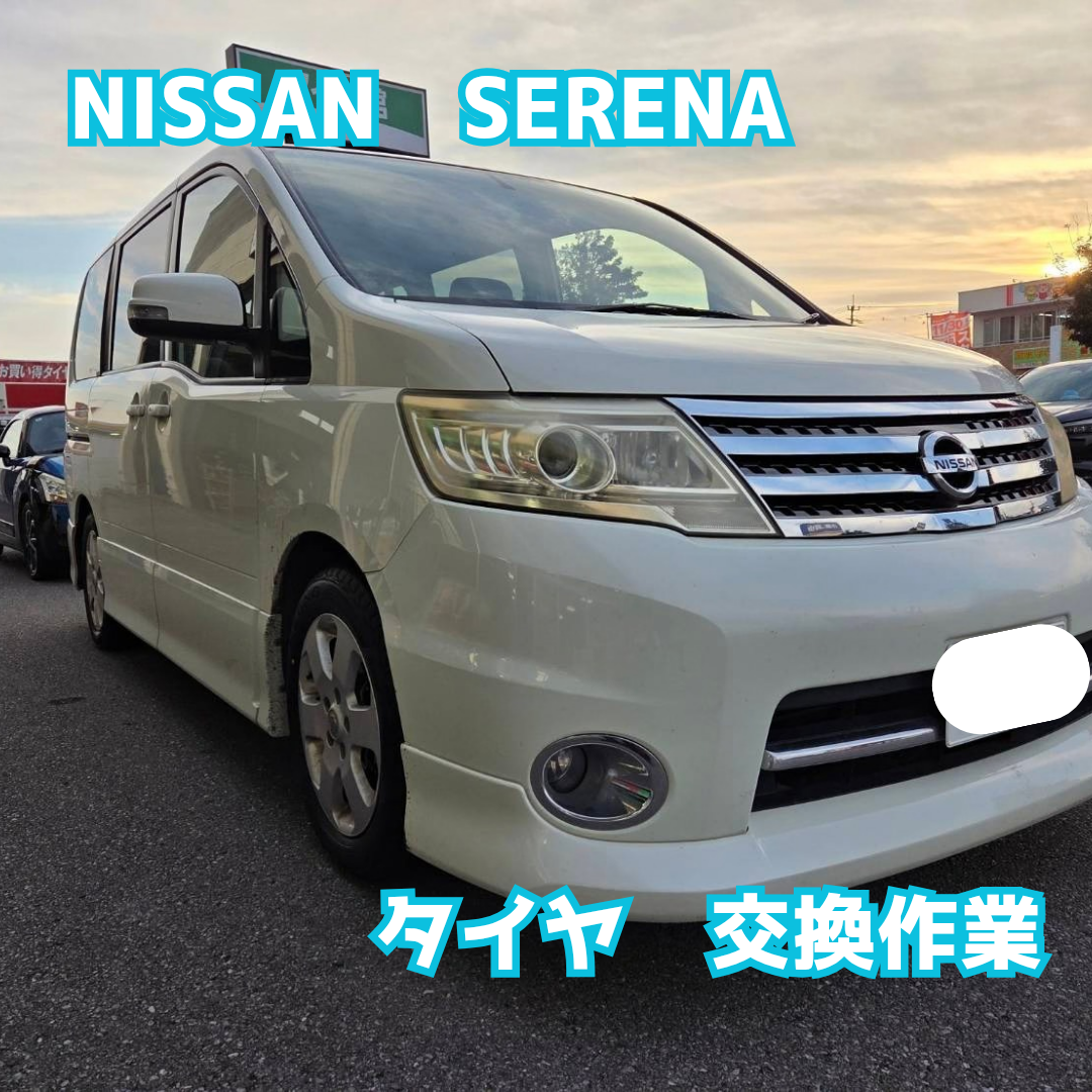 本日はNISSAN セレナ タイヤ交換作業をご紹介いたします。