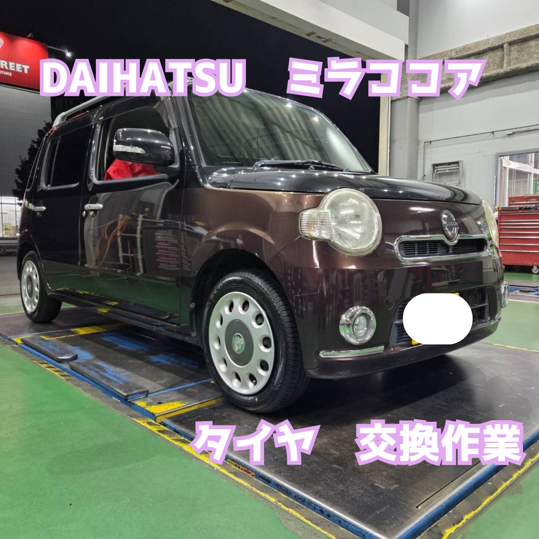 本日はダイハツ ミラココア タイヤ交換作業をご紹介いたします。