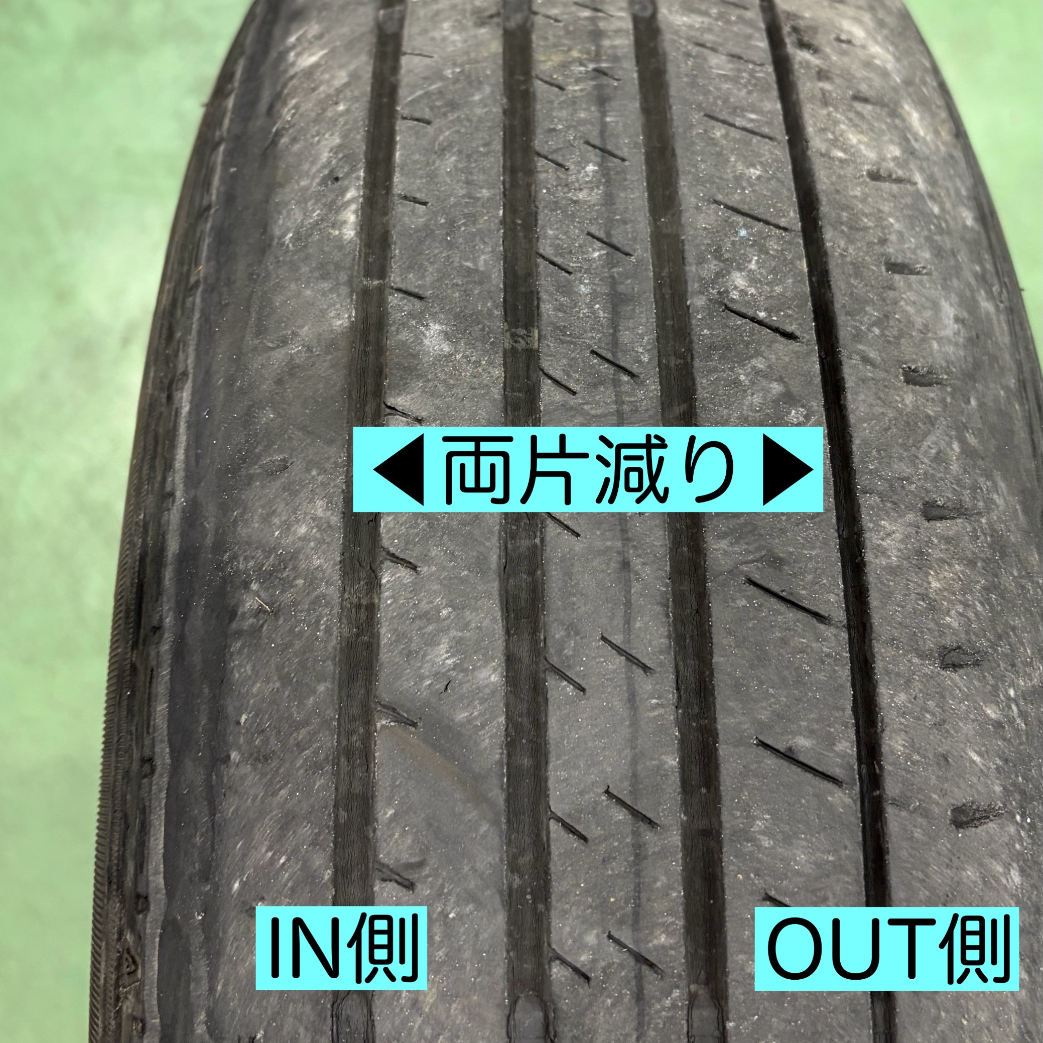 こちらはタイヤの両片減り摩耗のため交換。特に内側の減りが顕著でした。