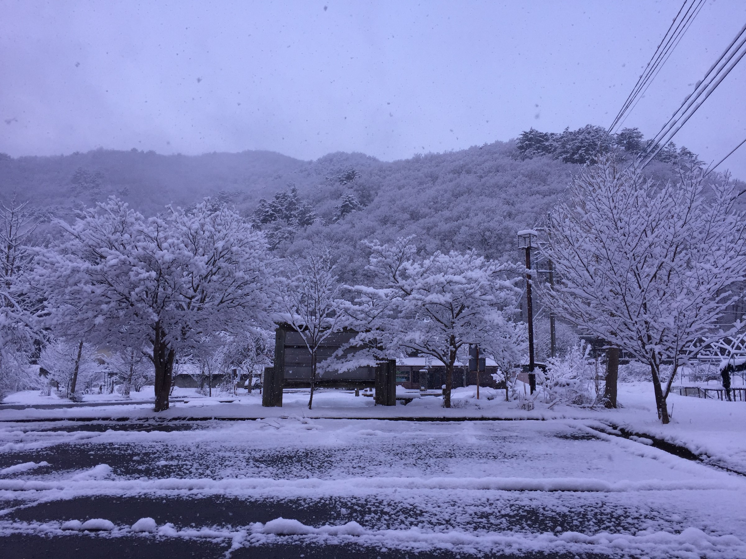 弱めだったので日が出たら止むだろうと思い進み男鹿川周辺の駅に着くと雪景色!
