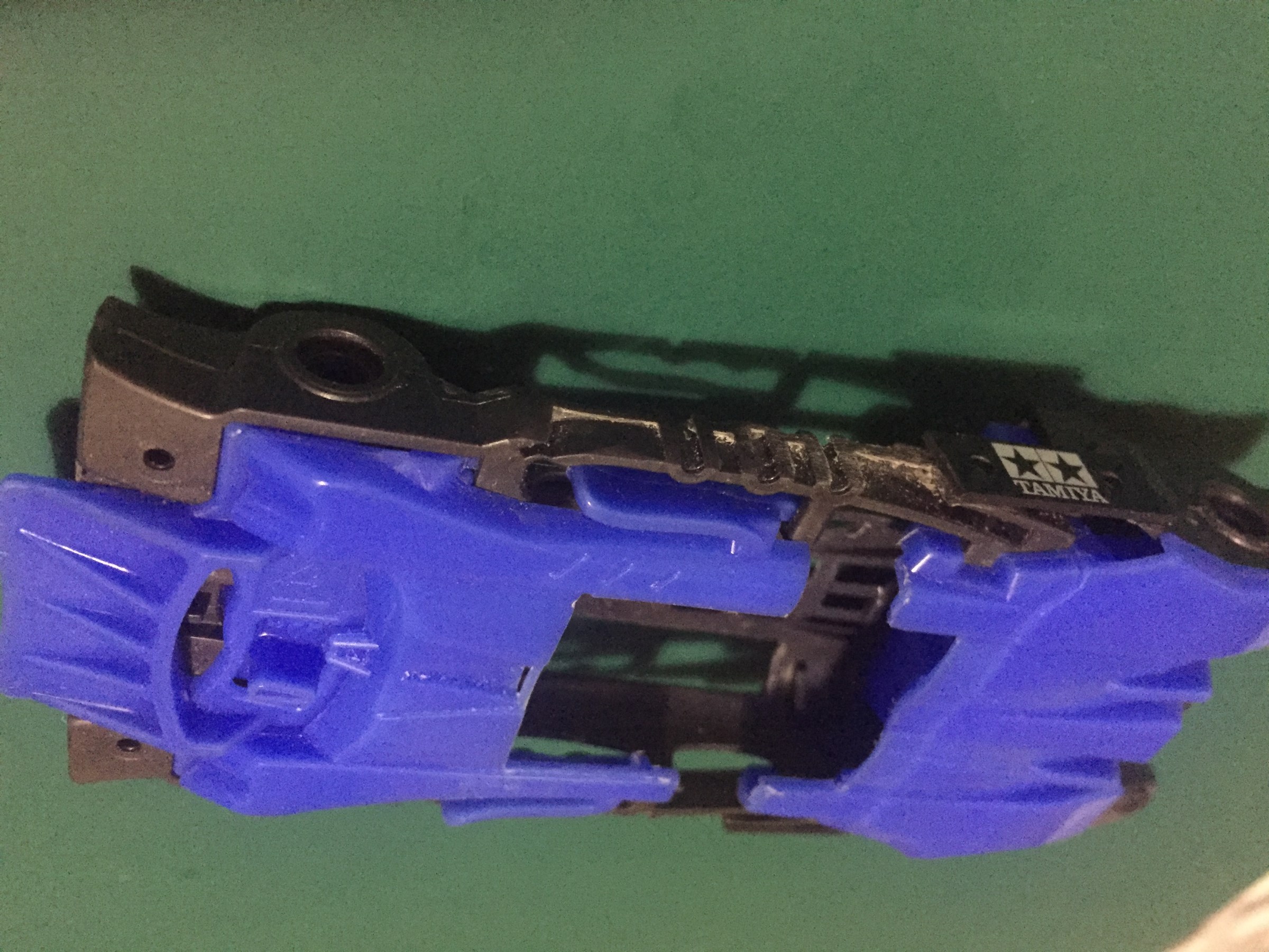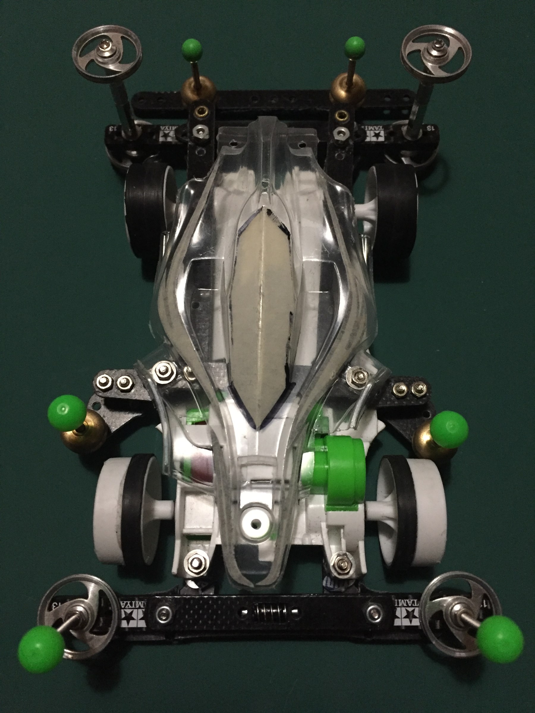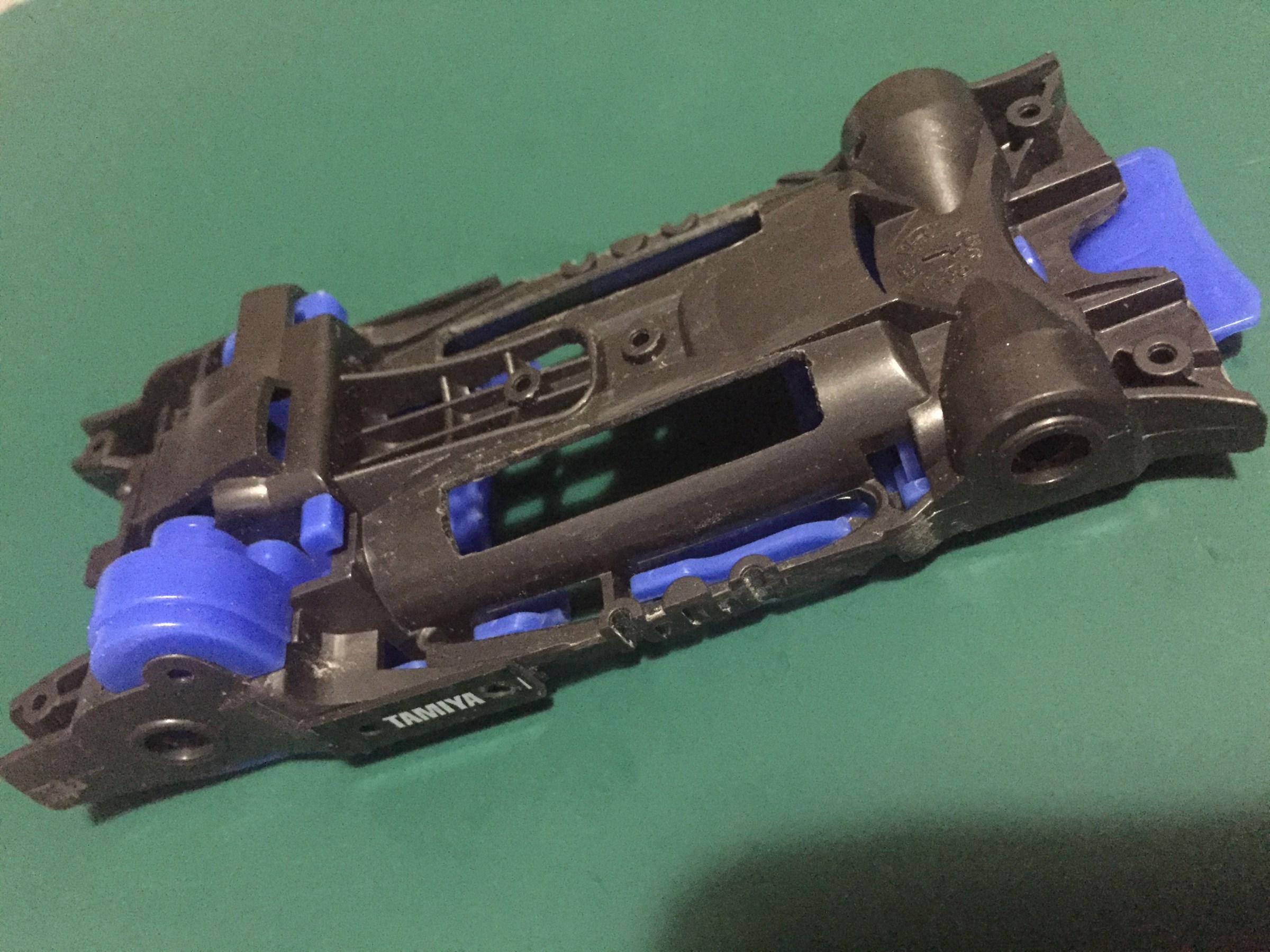 シャーシとリューターを手に1時間半、さらにカーボン切って貼り付けて1時弱!