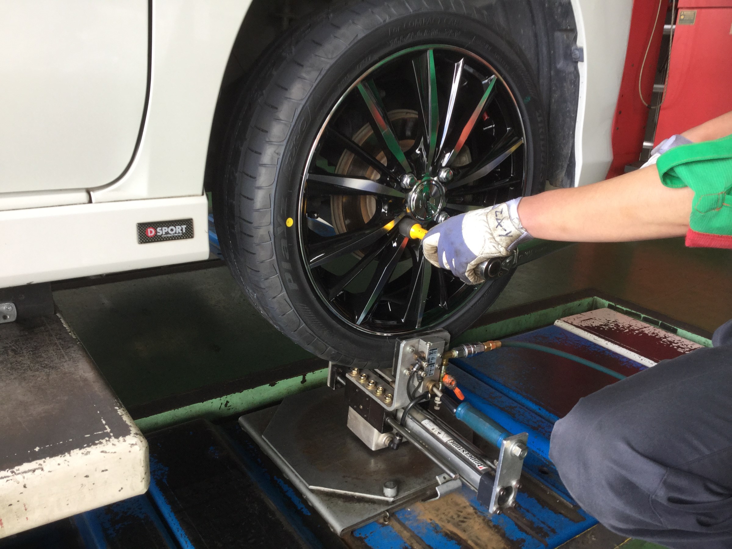先日ご予約頂いていたムーヴのタイヤ+ホイール交換をしました!
