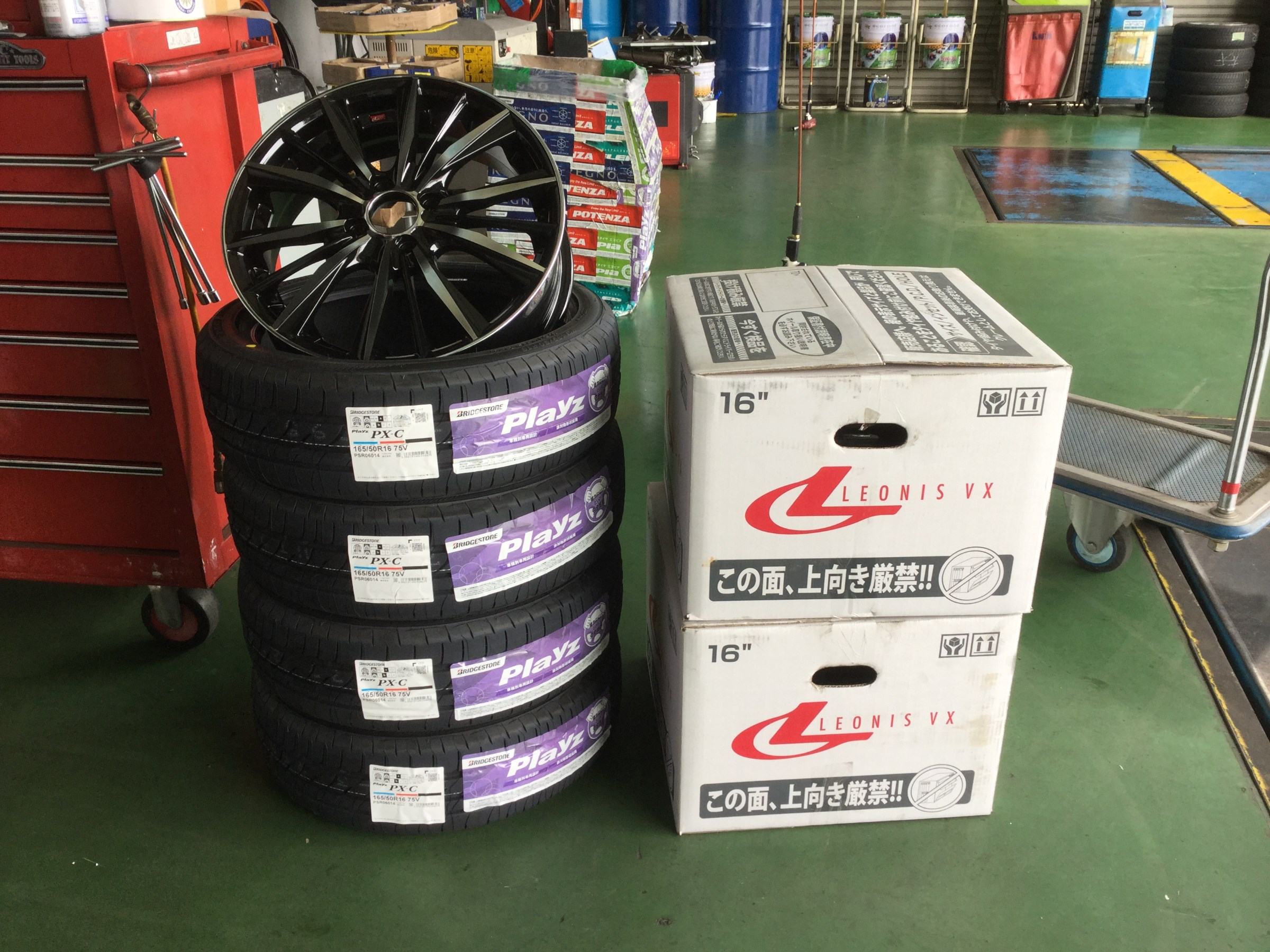 インチアップをしてタイヤは165/50R16PX-CホイールはレオニスのVXでございます!